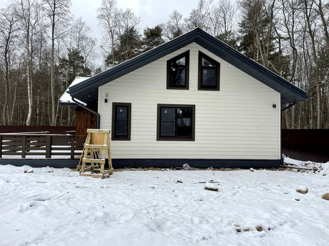 Дом зимний, все коммуникации. (газ по границе).  Участок ровный и сухой. Забор.