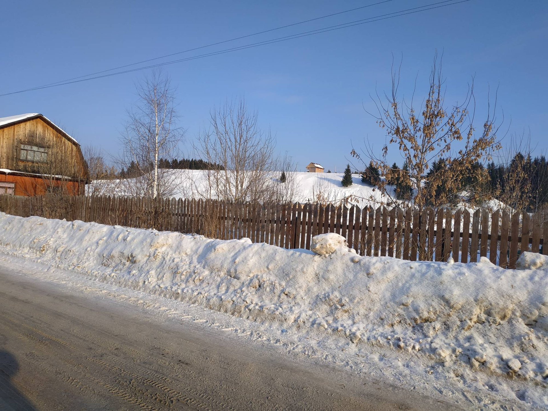 Участок огорожен забором. Подъезд асфальт. Есть возможность подключения газа, электричества и воды.