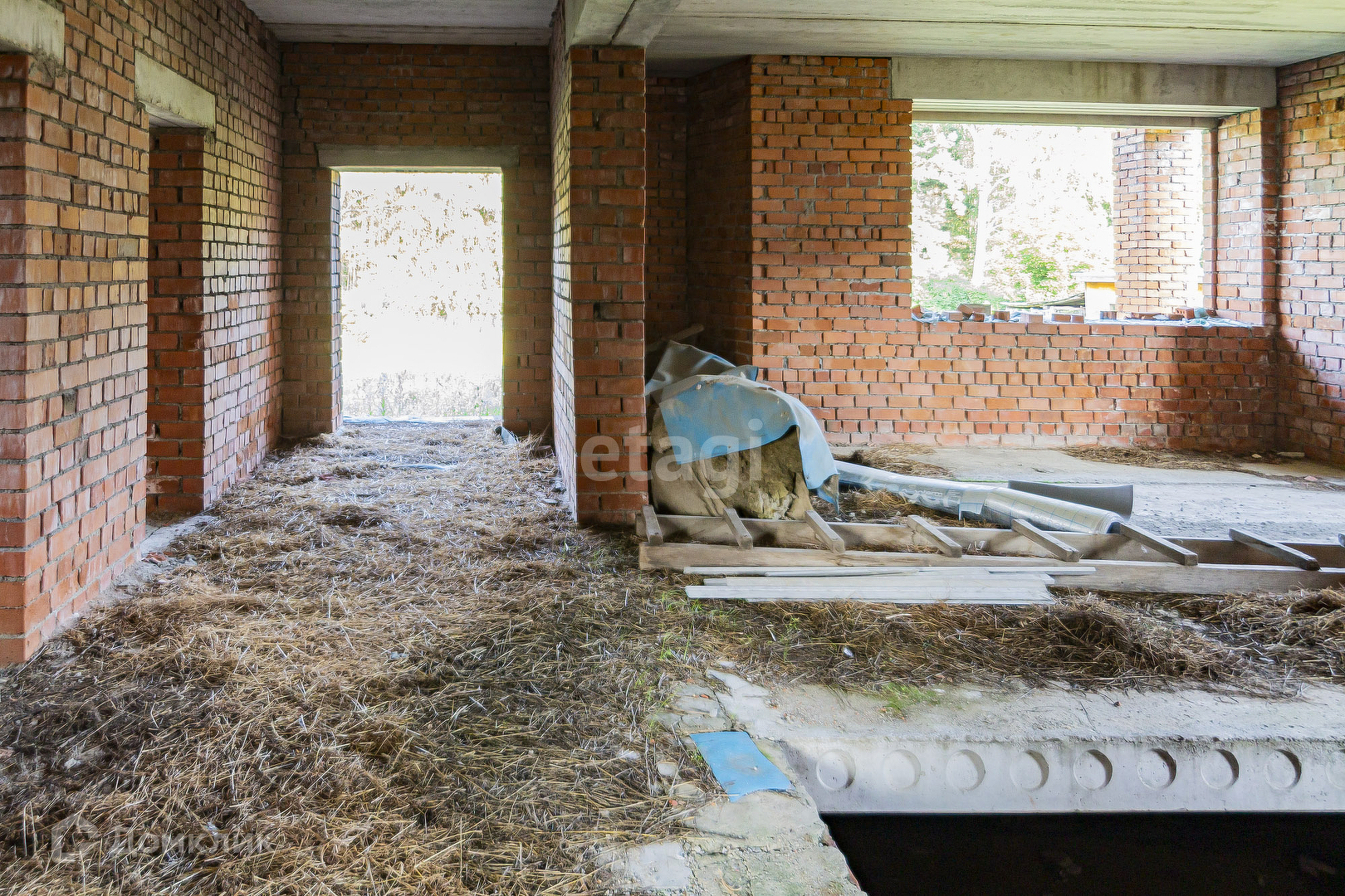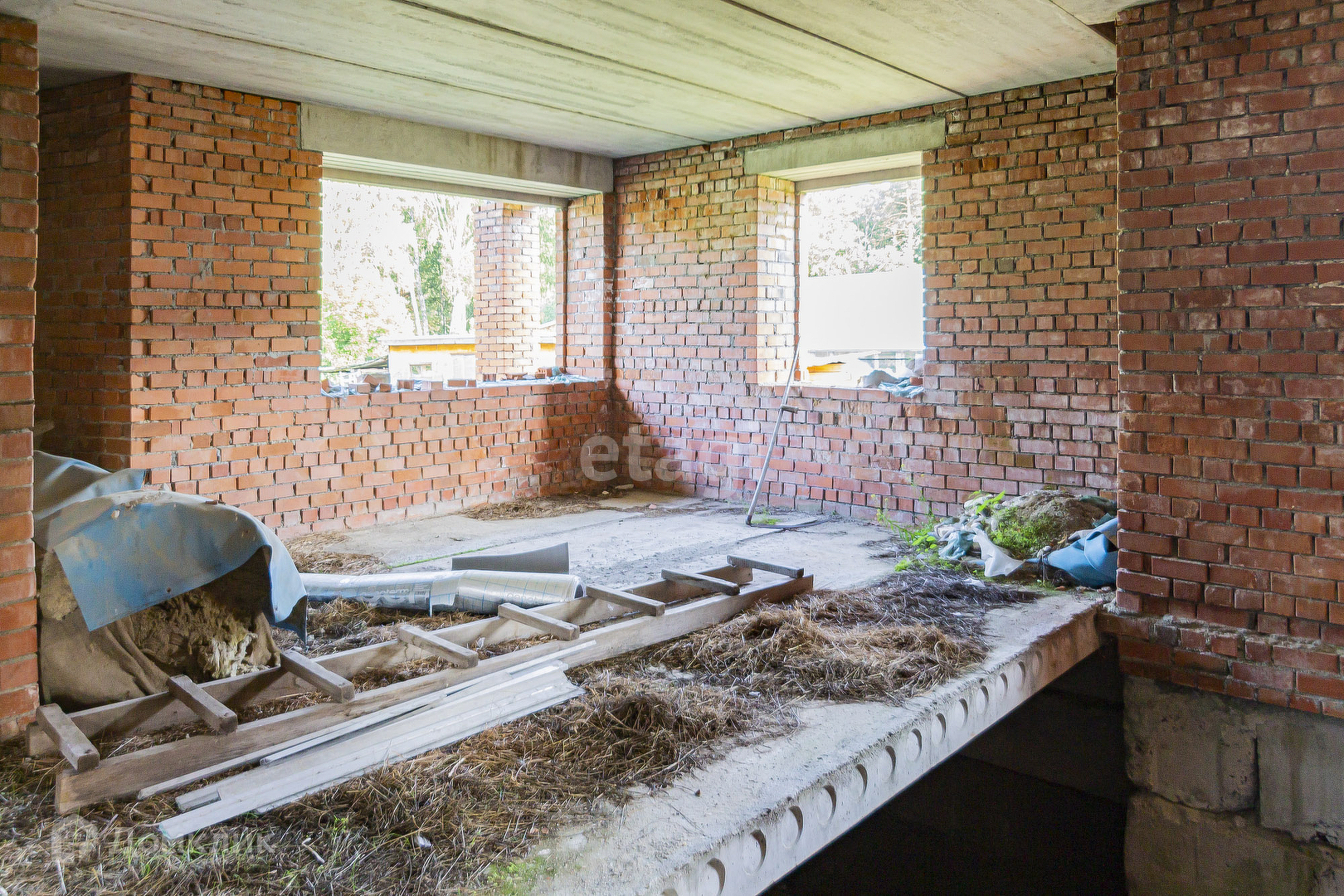 Один из лучших в поселке. Земельный участок 15 + 15 соток!!!!На участке находится недостроенный коттедж. Полностью возведен первый этаж, имеется цокольный этаж, который можно использовать по своему усмотрению (как погреб, подвал). На этаже тамбур, 2 комнаты, кухня-гостинная, 2 санузла. Имеется место для камина. Участок имеет свой собственный выход в лес и к речке. Это и есть дополнительные 15 соток, так как там никогда не будет постройки.