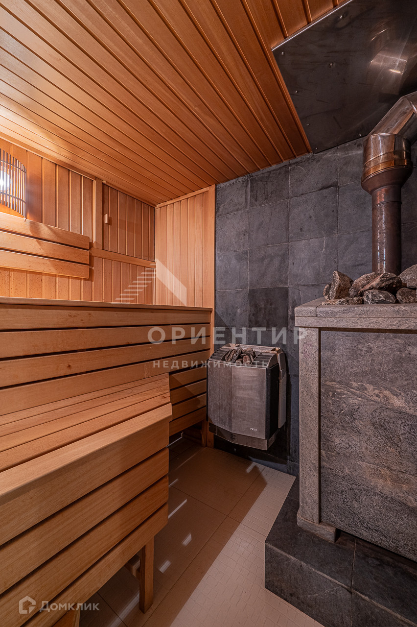 На цокольном этаже расположен бассейн с оборудованием "искусственной волны", сауна из липы и африканского дуба, душевая, оборудованная котельная, большой погреб и подсобные помещения. Сердце дома - большая терраса с печным камином, зоной барбекю, оборудованной кухней, теплым полом и панорамным остеклением - где будет приятно проводить время всей семьей в любое время года!