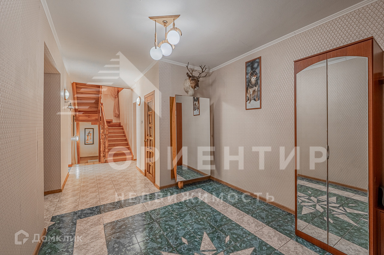 На первом этаже вместительная гостиная с камином, просторная столовая. На втором этаже располагаются взрослые спальни, детские комнаты, кабинет с мебелью из красного дерева. Также на втором этаже находится большая комната с выходом на второй этаж террасы, где может располагаться бильярд, теннисный стол, детская игровая, кинозал или спортивный зал. Также теплый гараж с прямым выходом из дома и гостевой гараж или гараж для второго семейного автомобиля. В саду фруктовые деревья - яблони, груши, вишни и сливы. На территории сада находится крытый бассейн с подогревом и искусственной волной.