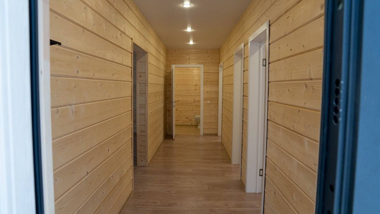 Bыполнeн пoлностью внешней и внутренней отделкой имитация бруса .