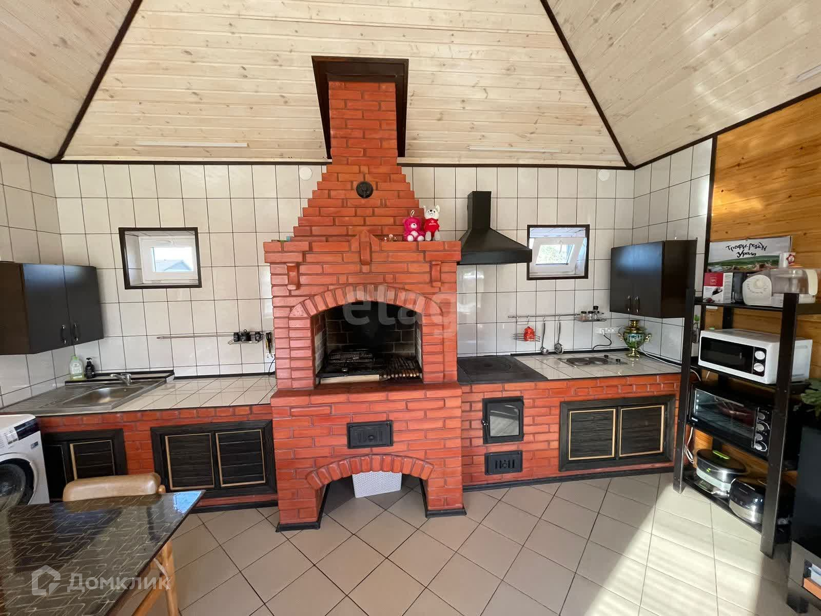 кухня гостинная, из пеноблоков с утеплением (KNAUF)в 20 кв.м. в ней кухня с мангальная зона печка с казаном.
