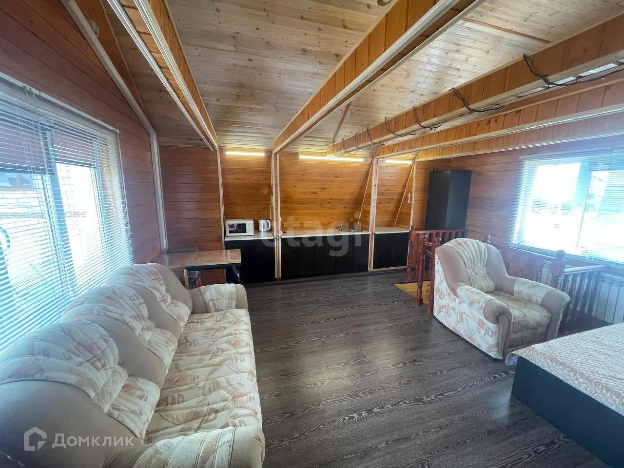 Второй этаж, мансардный - жилая комната со встроенной кухней.