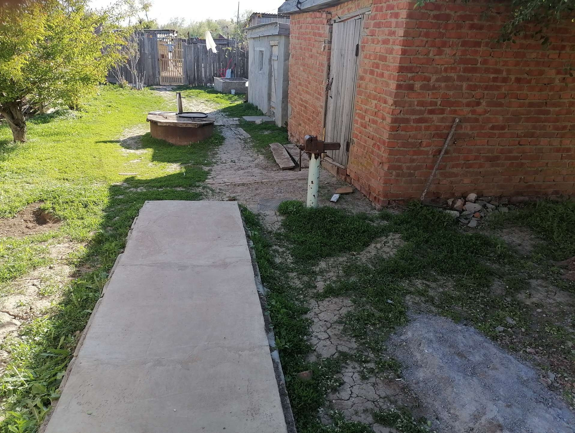 Во дворе дома  растут плодовые деревья, имеется участок для выращивания овощей, во дворе дома имеется колонка что удобно для полива.