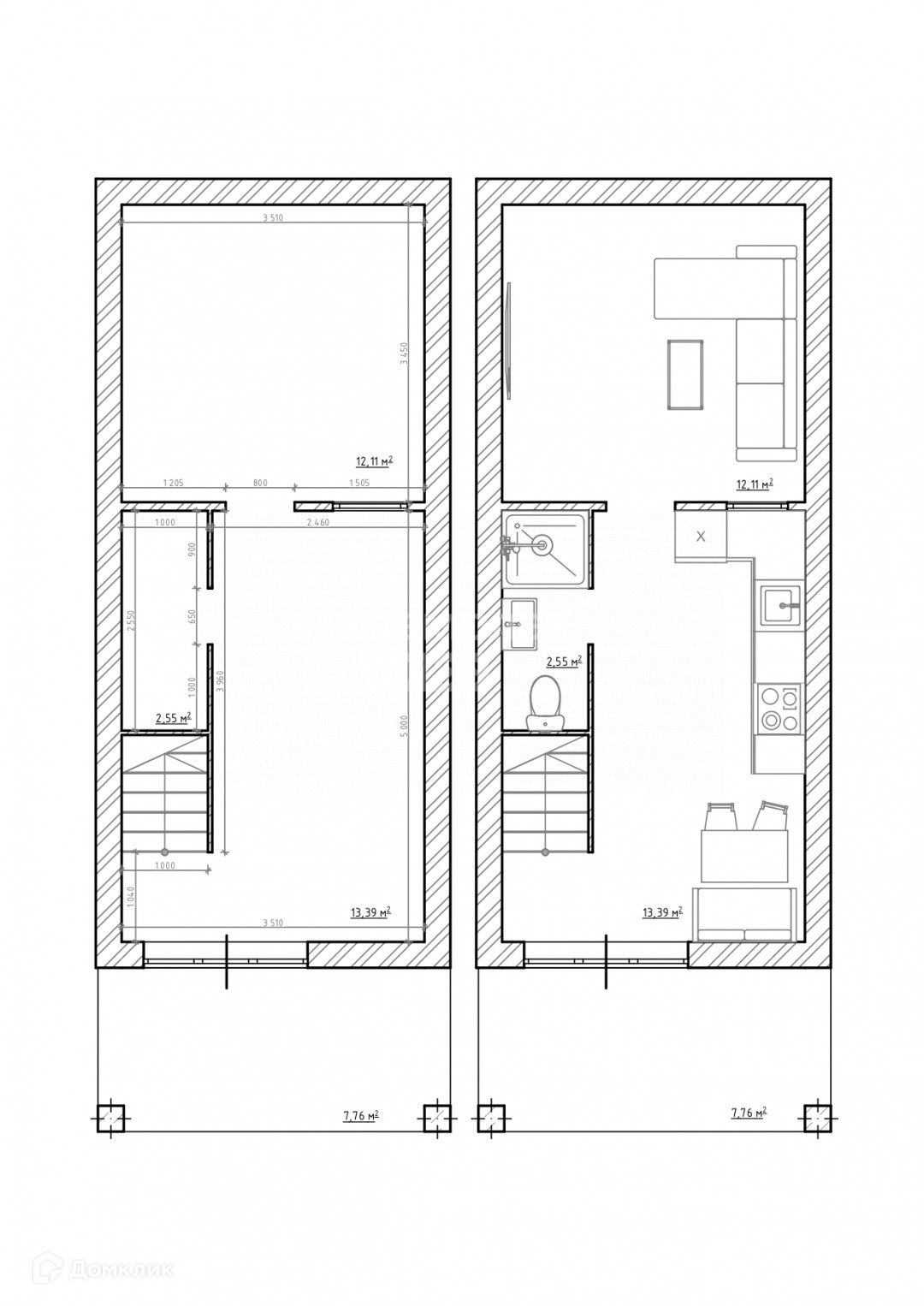 1-й этаж площадь 28,05кв.м. высота 2,6м