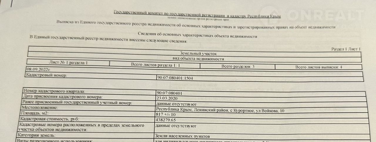 Стоимость недвижимости: