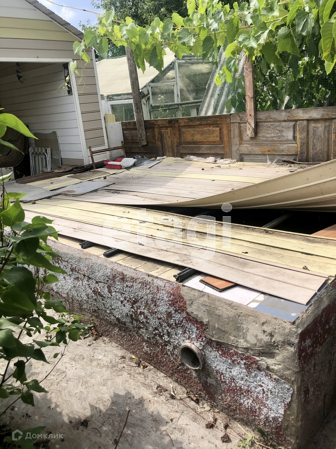 24 сотки земли, участок прямоугольный . Просторный асфальтированный двор. Хоз.постройки: бассейн, гараж с ямой, курятник, летняя кухня, теплицы, погреб, летний душ , вольер для собаки. На участке декоративные и плодово-ягодные растения: облепиха, грецкий орех, черешня, груши, клубника, малина, слива, туя и цветы.