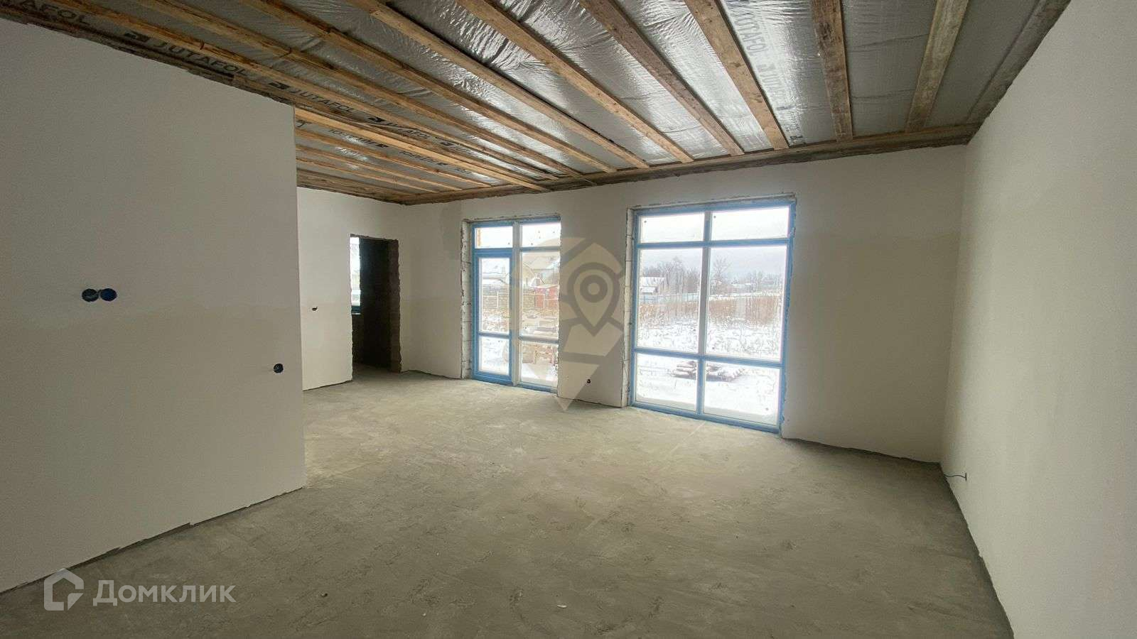 Крыша-металлочерепица.Планировка:Кухня + гостиная с выходом на террасу.