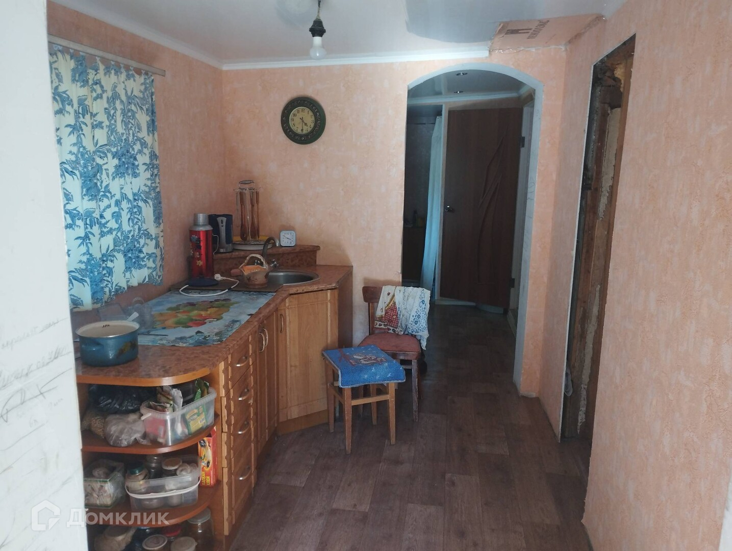 2 комнаты, кухня, санузел совмещенный, 2 коридора, подведена вода (стоит счетчик), газ, проведен сетик. В комнатах ламинат, в коридоре и кухне линолиум, санузел плитка. Крыша шифер. Окна ПВХ, новый напольный котел, биметаллические батареи, боллер на 50 л. Есть новая блочная постройка 28 м2, крыша металочерепица, вода и отопление заведены. На участке есть погреб, фруктовые деревья, участок огорожен. Дорога асфальтирована. В пешей доступности автобусная остановка, медпункт и т.д.