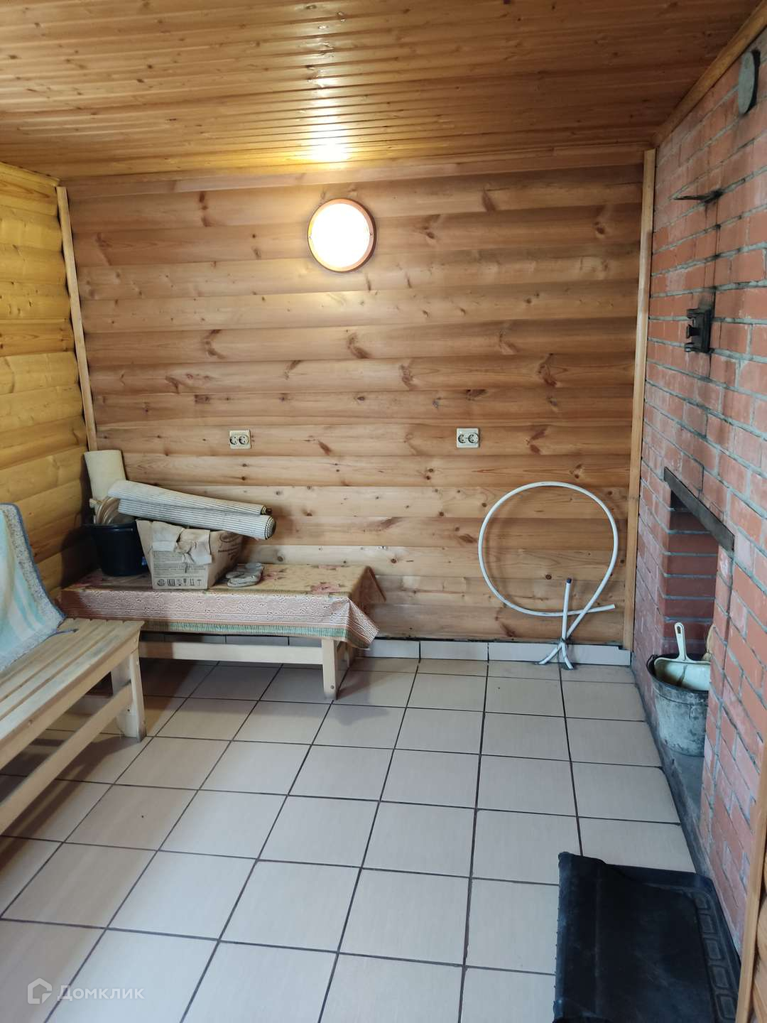 Кроме этого имеется отличная баня на дровах 6 х 4 из керамзитовых блоков накрыта сайдингом .Внутри пол плитка , двери жаропрочное стекло , стены в парилке отделаны липой , моечная и предбанник блок Хаус.