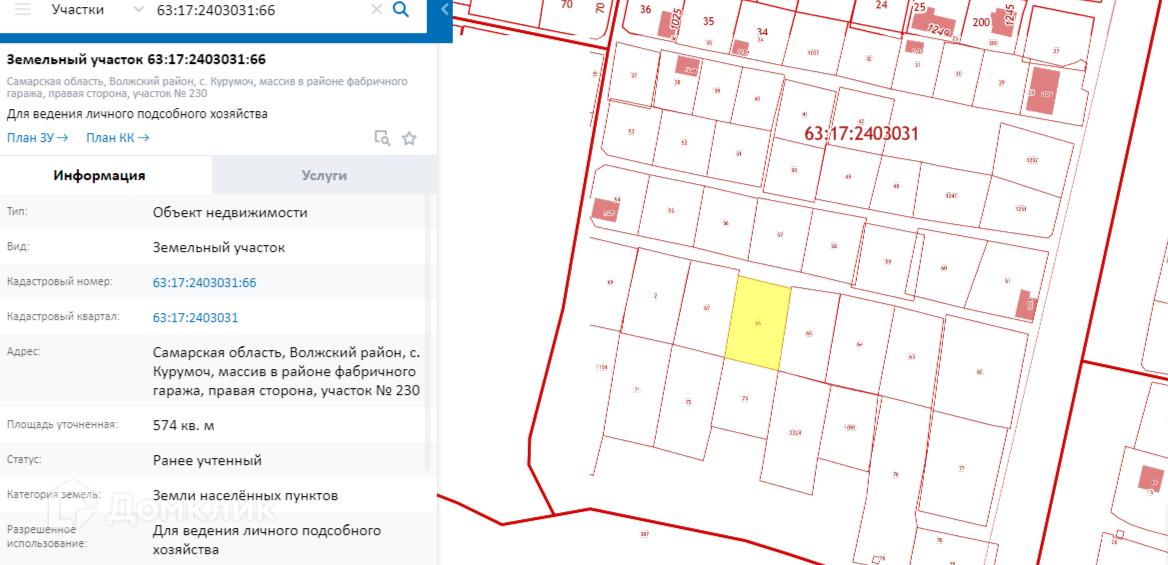 Арт. 74058917 К продаже представлен земельный участок по адресу: c. Курумоч, участок № 230