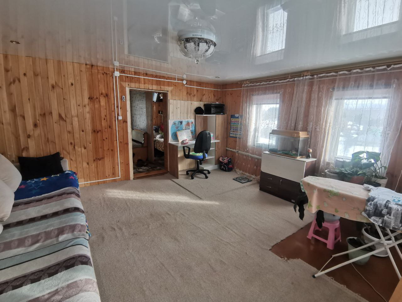 В доме сделан ремонт. Стены изнутри обшиты евровагонкой. Дом очень светлый.