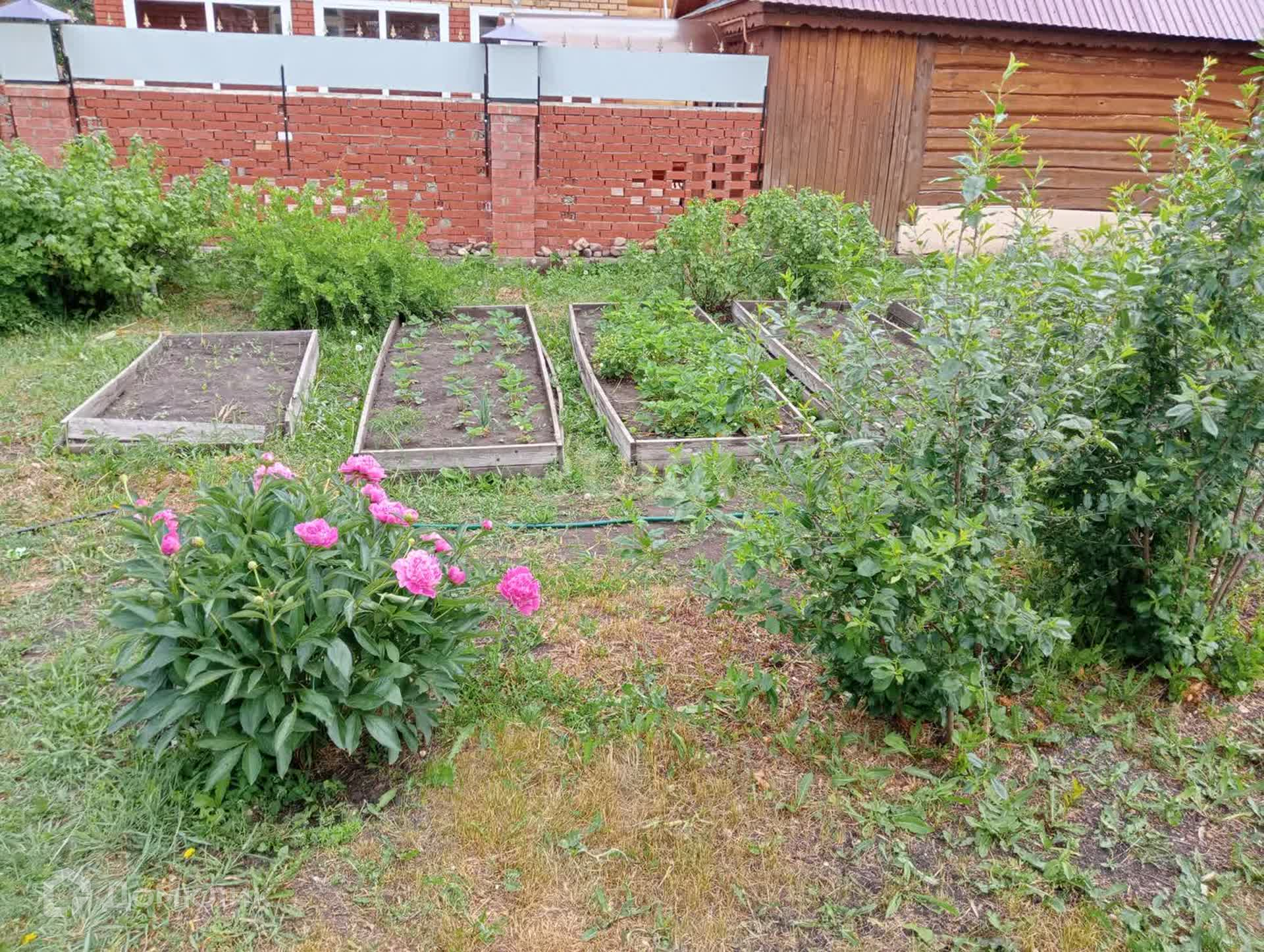 Насаждения: клубника, черная смородина, малина, слива, крыжовник, вишня; многолетние цветы: пионы, ирисы, астры, тюльпаны.Так же посажены помидоры и огурцы для новых хозяев.