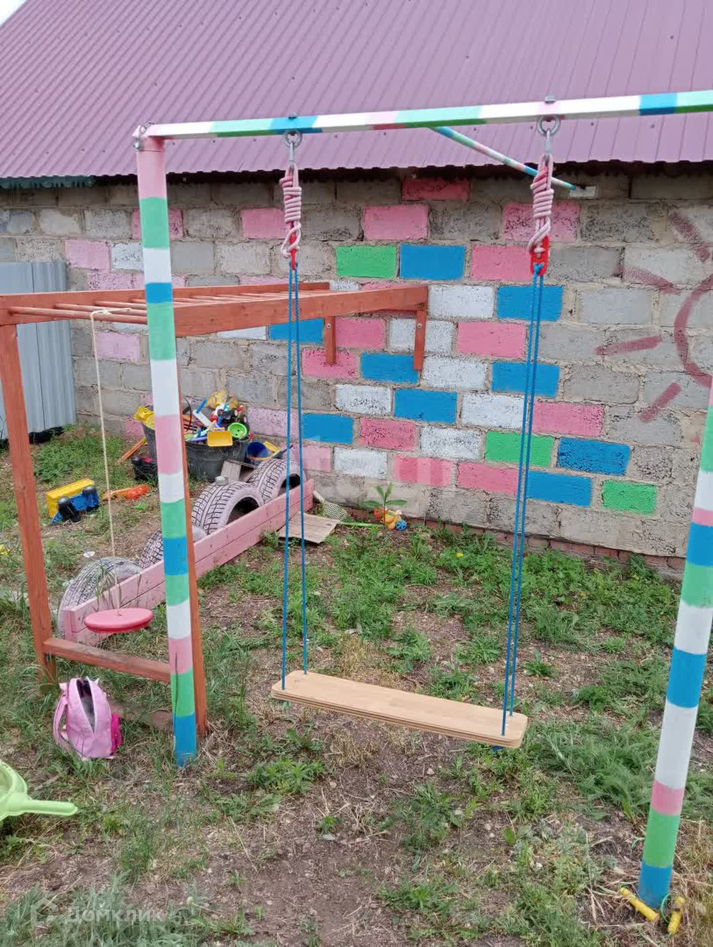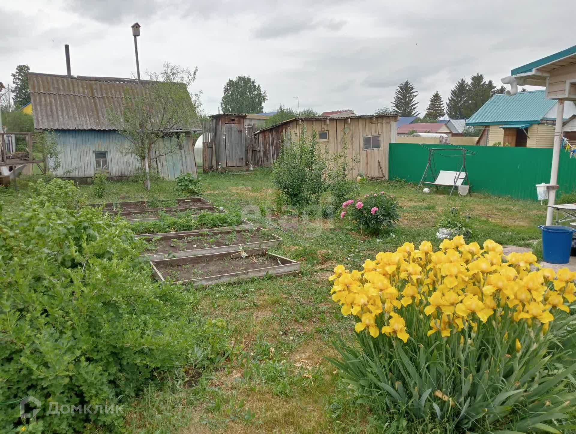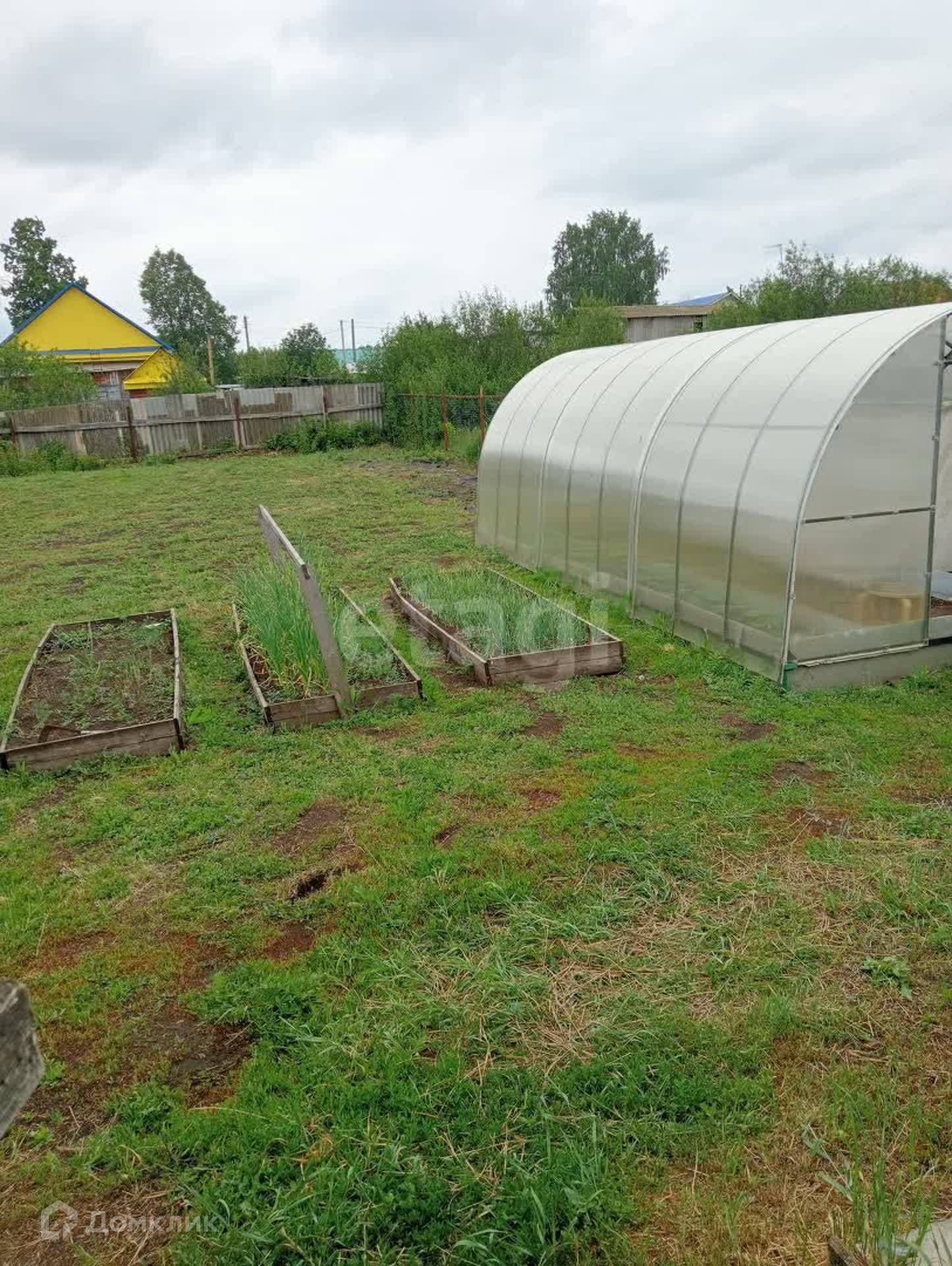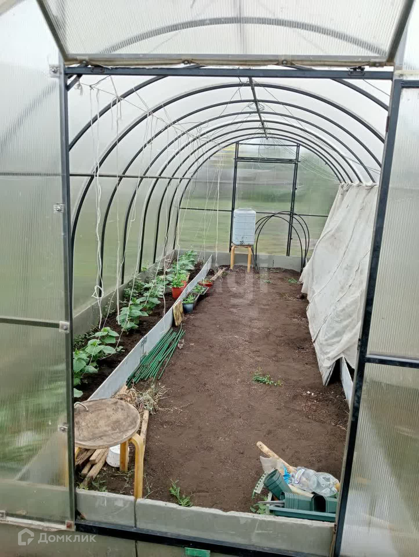 На участке: баня, хоз. блок, туалет, ёмкость для полива объемом 1 куб. с электронасосом, детская игровая и спортивная зоны, хорошая новая теплица; сформированные постоянные грядки.