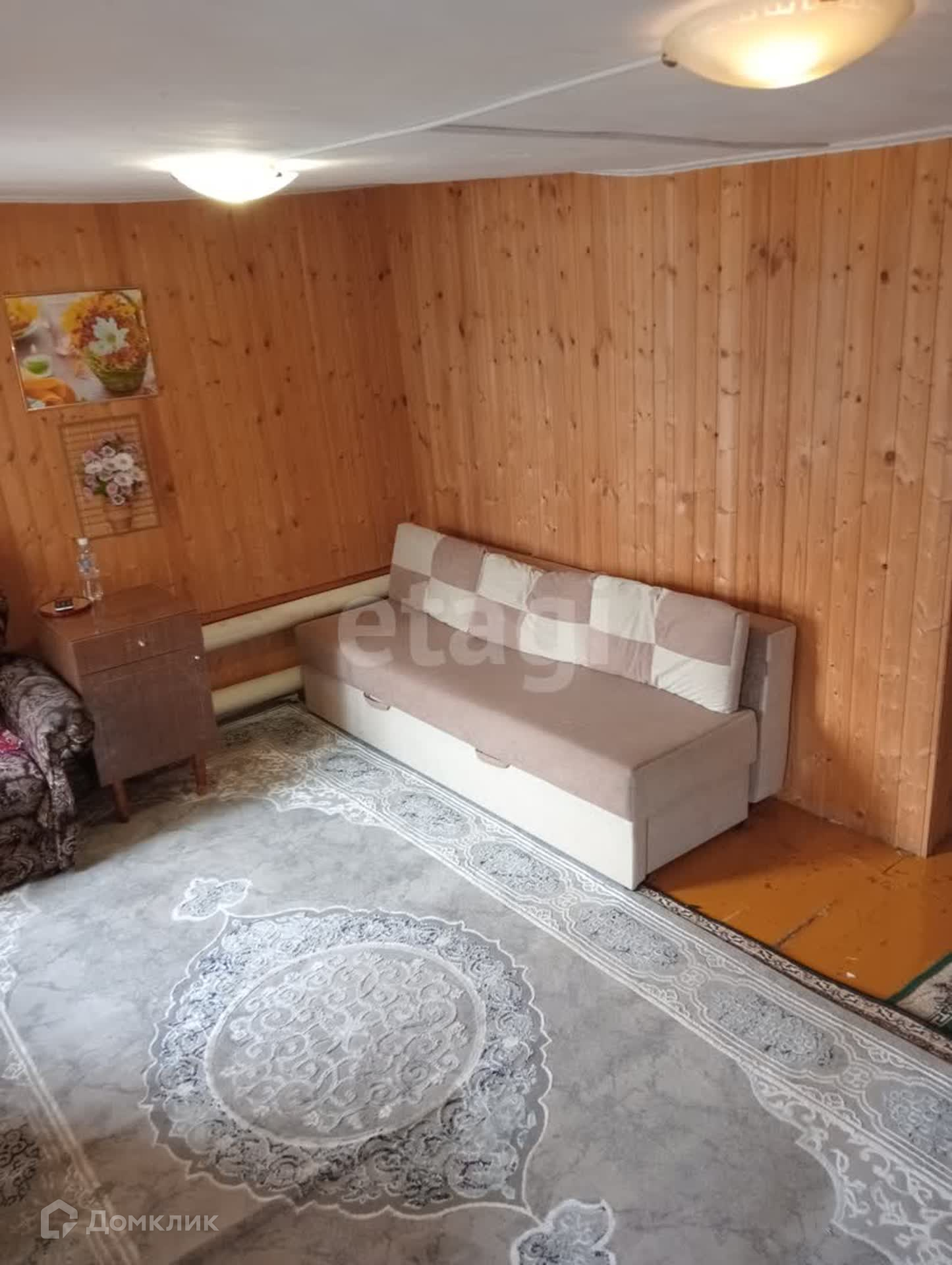 Дом обшит сайдингом снаружи, внутри евровагонкой.