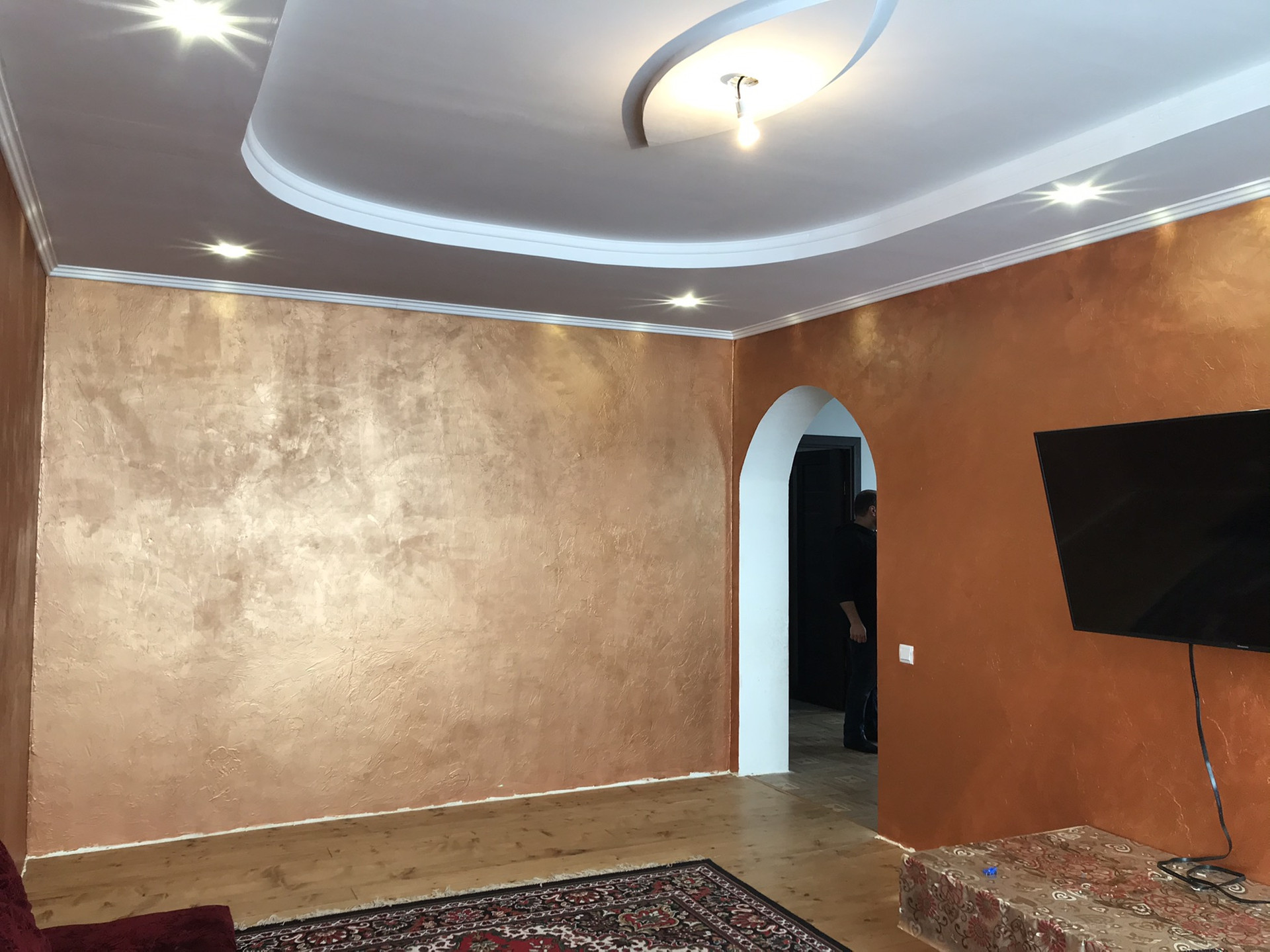 Современный кафель, инсталляция, дорогая сантехника. Венецианская штукатурка, подвесные потолки - зал !