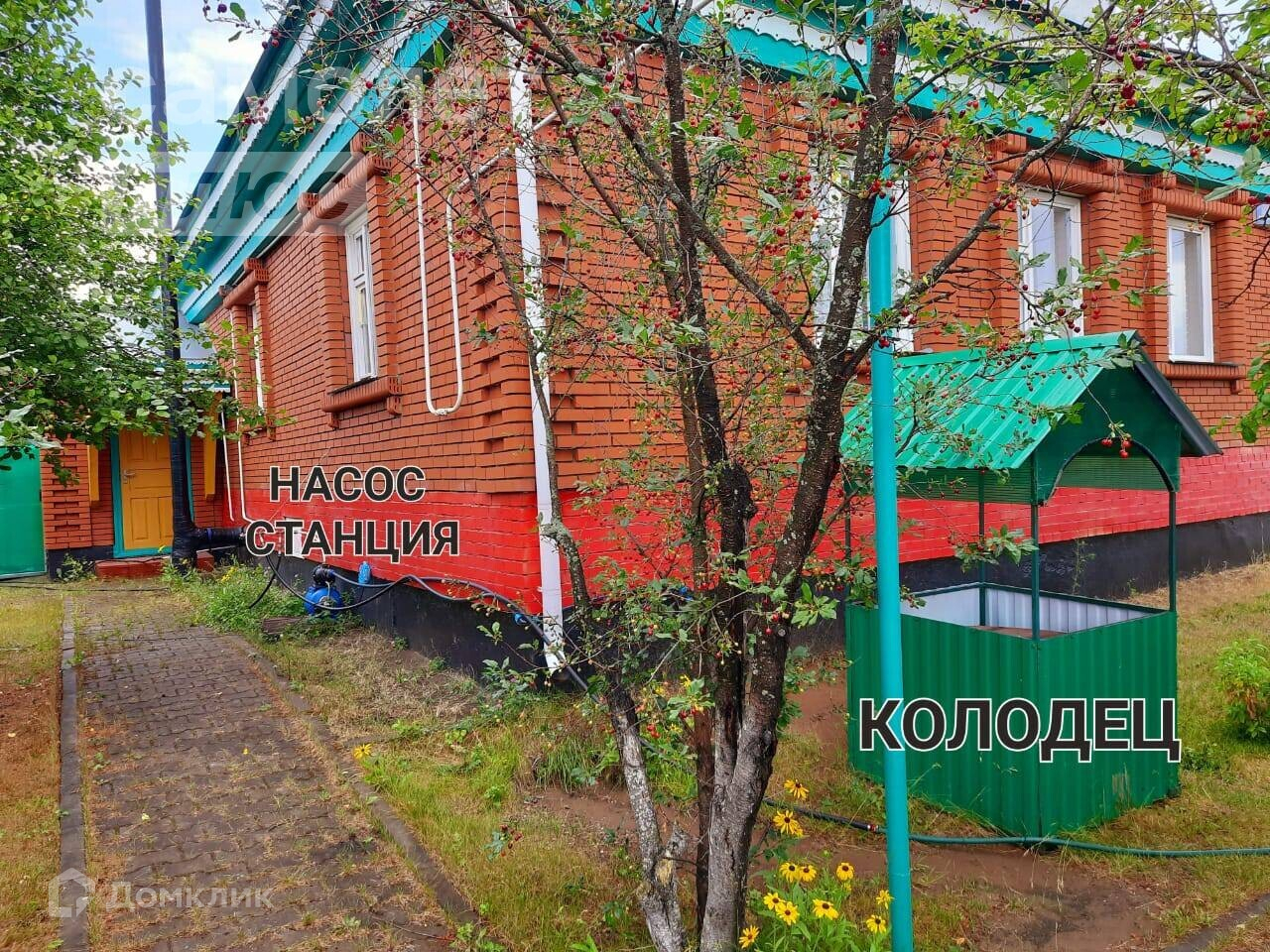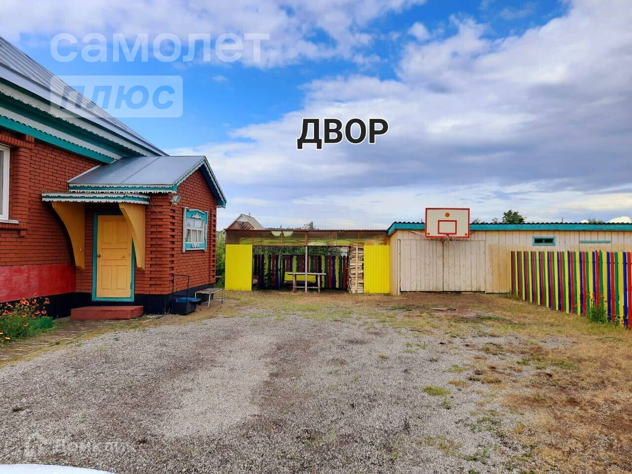 - Просторный двор с дорожками из брусчатки.