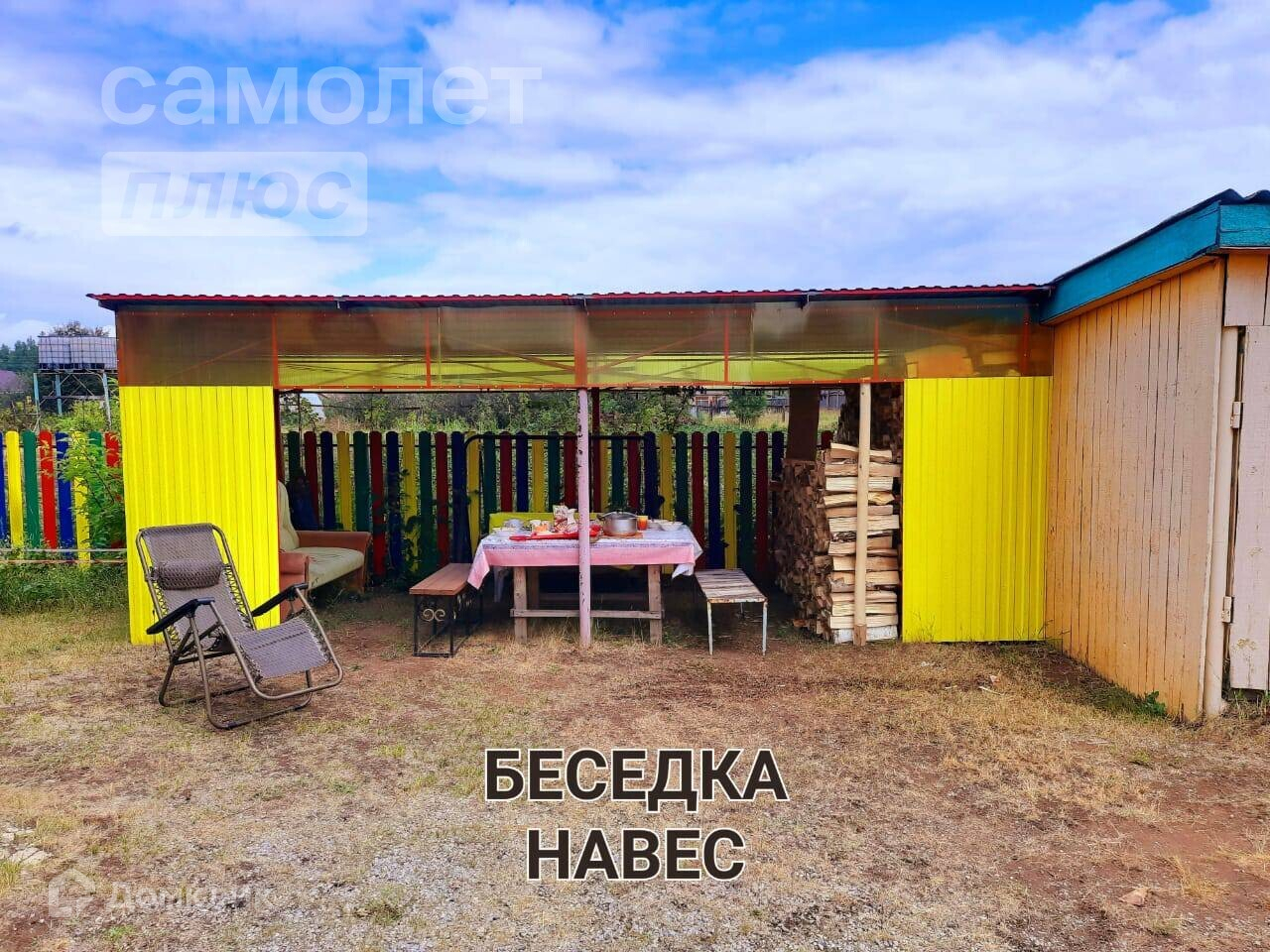 - Участок ровный. На участке есть баня с комнатой отдыха с печкой топи-мойся с теплым переходом в дом, летний домик с печкой, беседка, летний душ, гараж, хозяйственные постройки, погреб, колодец с насосом. Много свободного места для построек