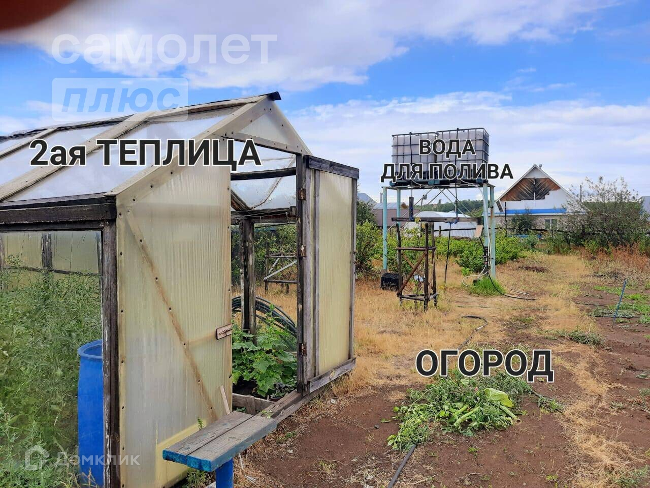 - Сад около дома, плодоносят многолетние насаждения. 2 теплицы