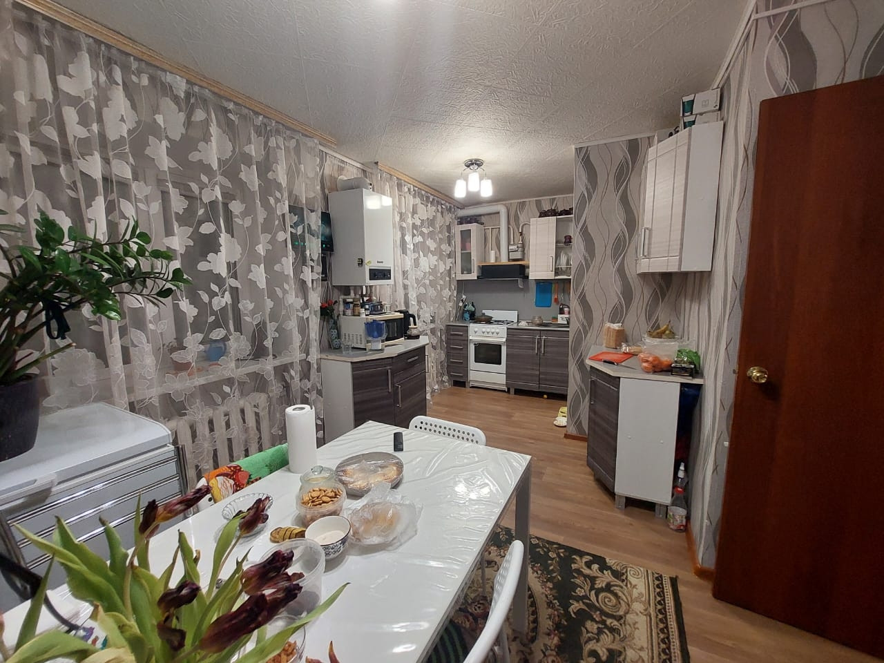 Продаётся уютная двухкомнатная квартира с индивидуальным отоплением, 51.6 кв.м, просторная кухня. Оставляем диван, большой шкаф, кухонный гарнитур, водонагреватель,и т.д. торг.