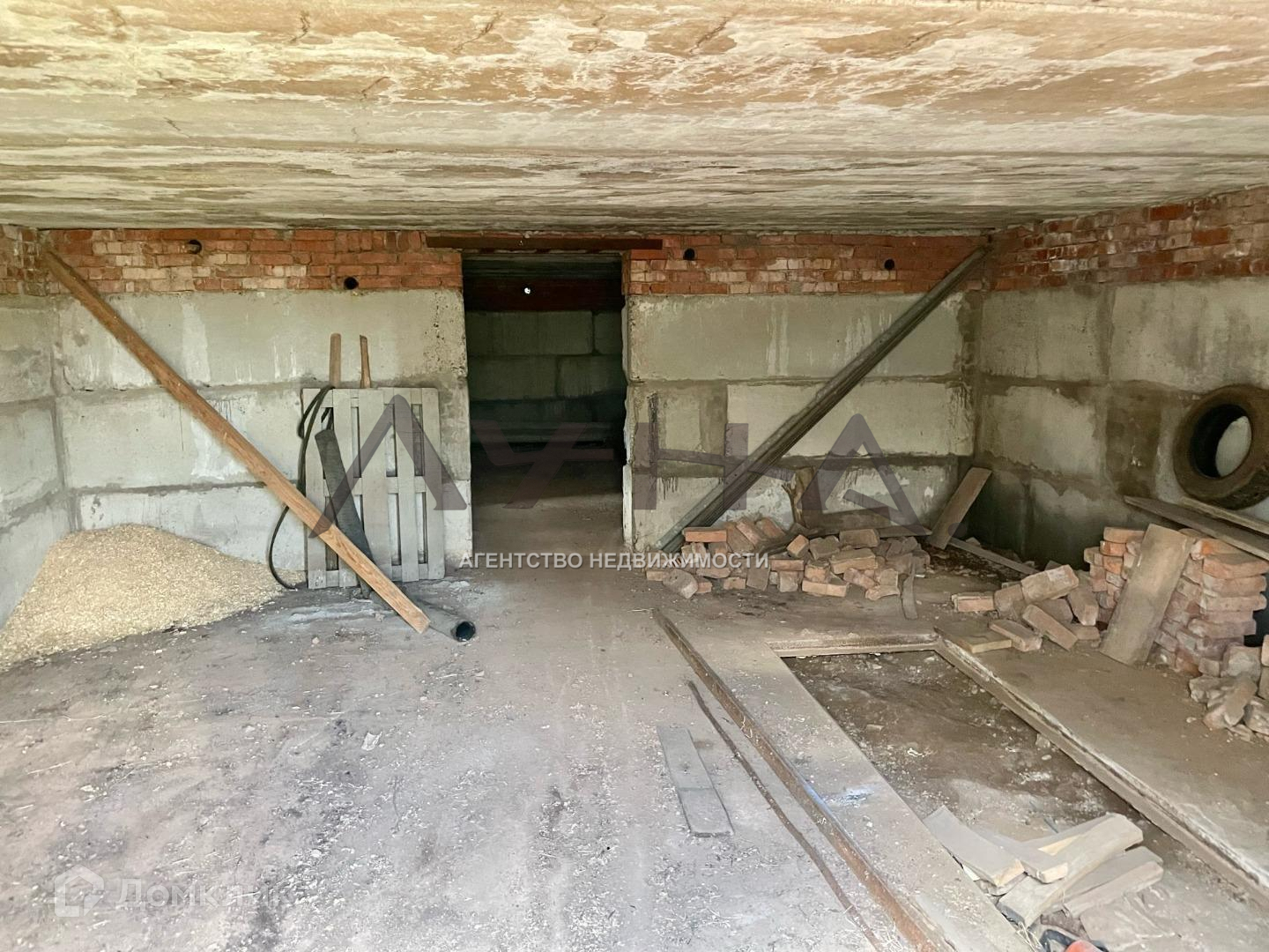 Дом  из кирпича  150  кв.м  с подвалом  и гаражом на 1  авто  в черновой отделке, расположен  на участке 28  соток. Все коммуникации : газ, вода, электричество есть.