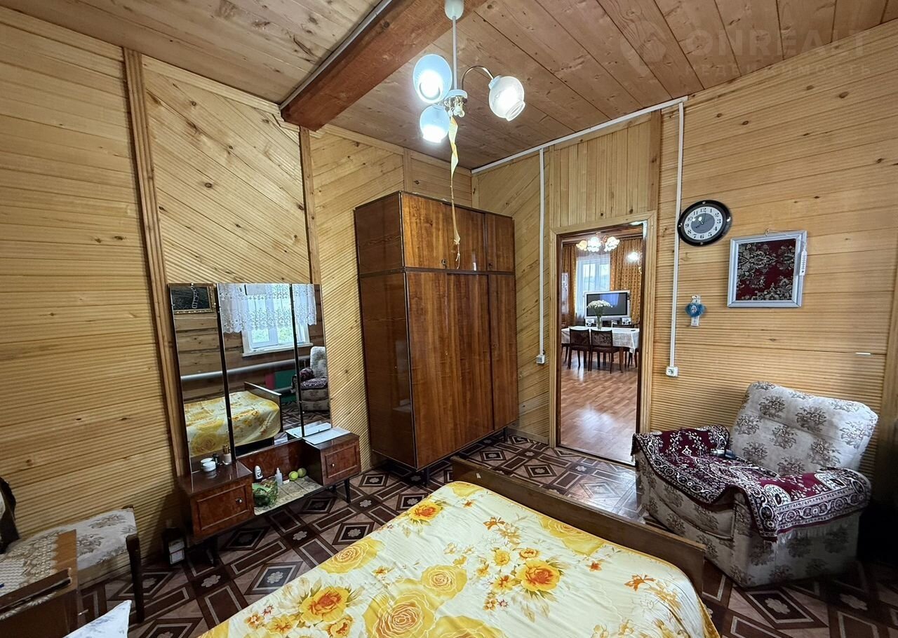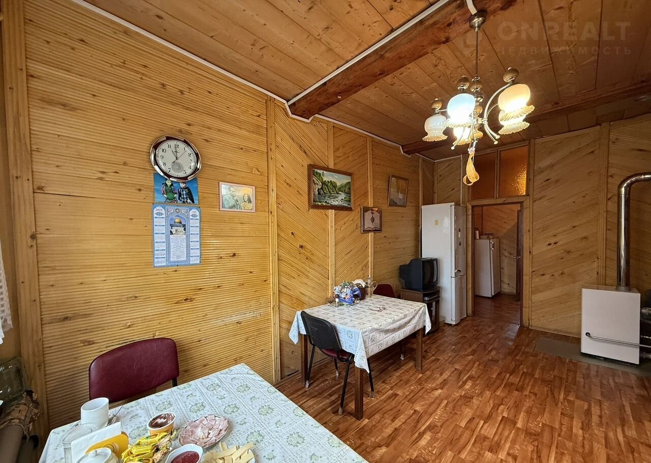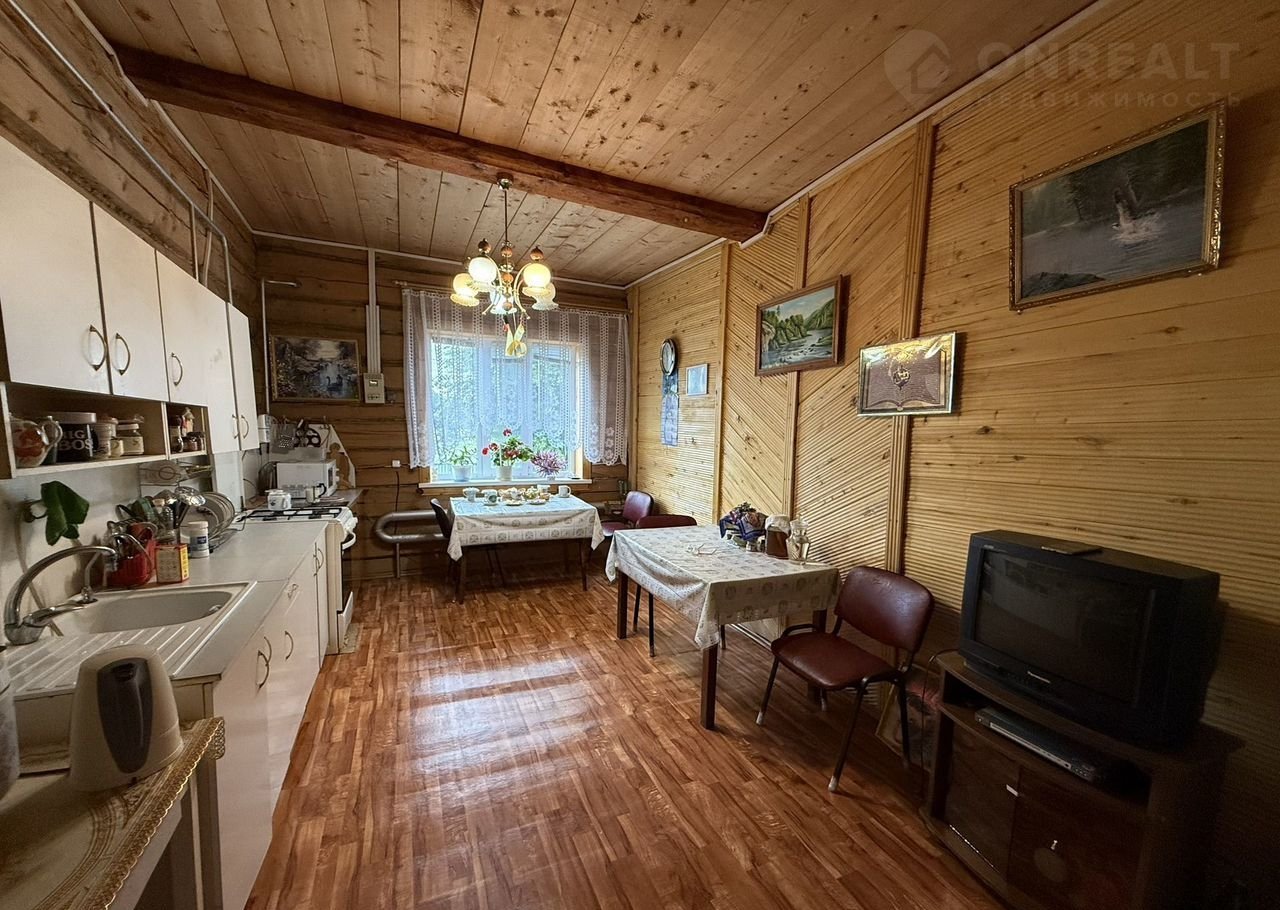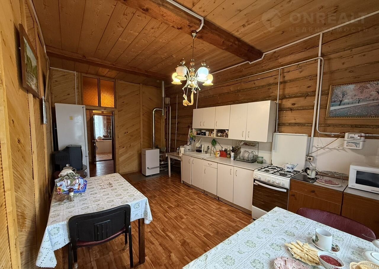 Дом из толстого бревна (сосна), снаружи обшит металлическим сайдингом. В доме газовое отопление, вода (холодная и горячая), канализация, ванная, туалет, пластиковые окна. 2 просторные веранды. Под домом огромный 11х9м подвал высотой потолка 4 метра, чердак, подсобные полуподвальные помещения. В дом заведено оптиволокно, интернет и кабельное телевидение.