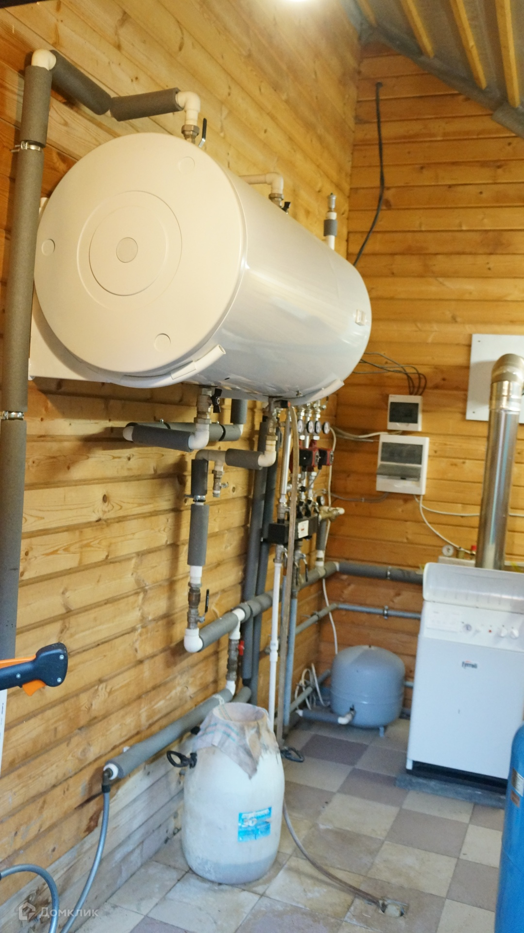 Дом из клееного бруса 200/140, Фундамент-монолитная железобетонная плита, кровля - мягкая черепица TEGOLA, окна -деревянные (двойной стеклопакет), система отопления: конвекторы KERMI, трубы отопления и водопровод -REHAU (сшитый полиэтилен) котел -FEROLLI 45 кВт, атмосферный, Бойлер горячей воды 200 л. Drazice, газгольдер -6,4 куб.м. (заправки хватает на весь отопительный сезон), эфирная антенна с приемом стереоканалов, канализация -ДКС, 2 колодца.