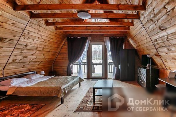 1 этаж - кухня, ванная комната, диван, стол и стулья, двуспальная кровать;