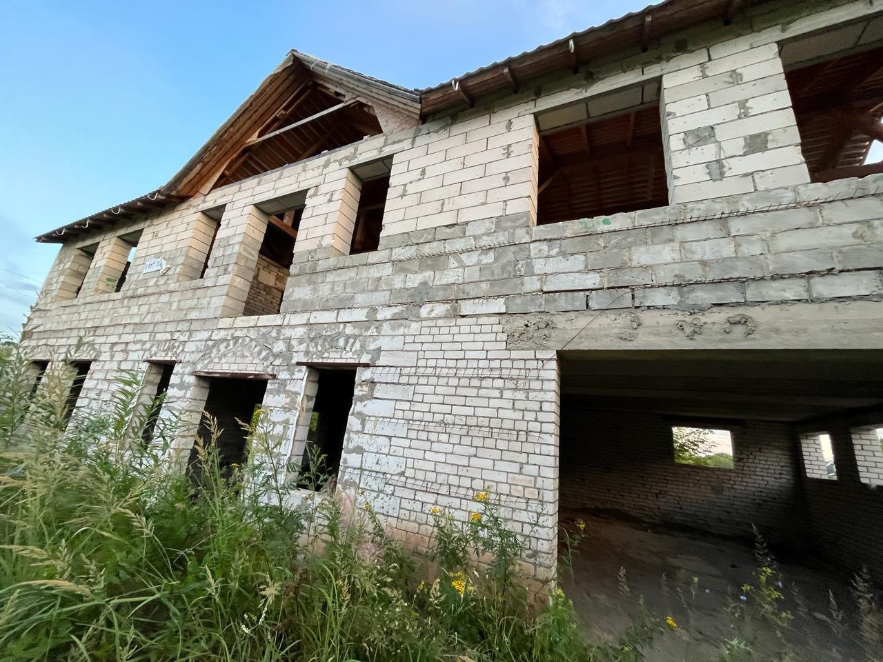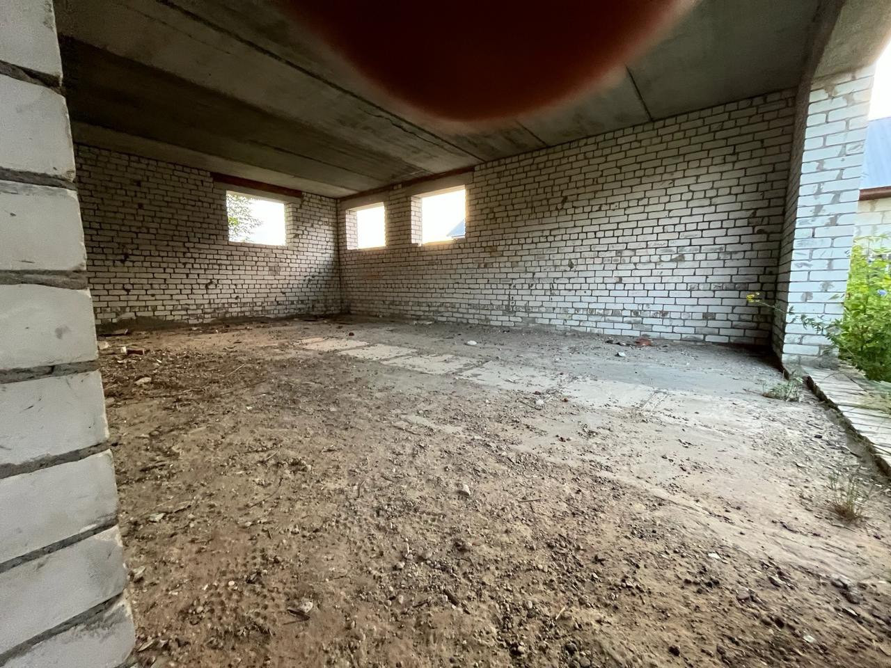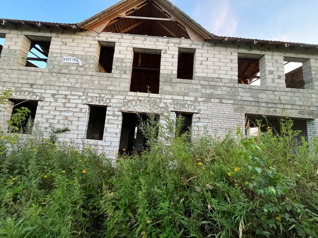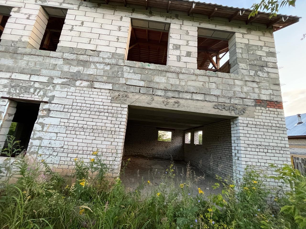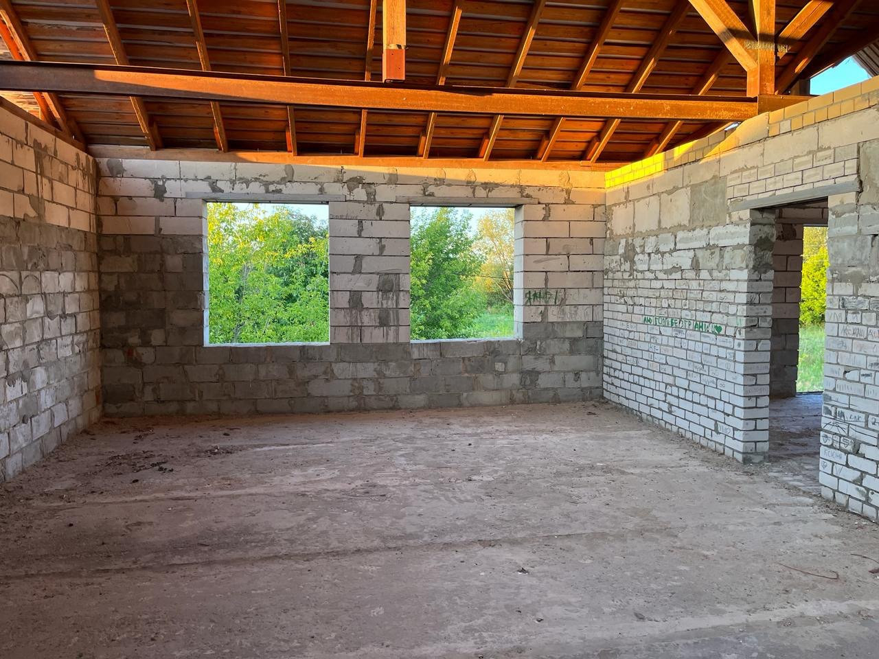Дом из пенобетонных блоков и кирпича, под крышей (кровельное железо), перекрытия - железобетонные плиты. Газ на соседнем участке, свет у дома, канализация - местная (септик). Подъездные пути хорошие.