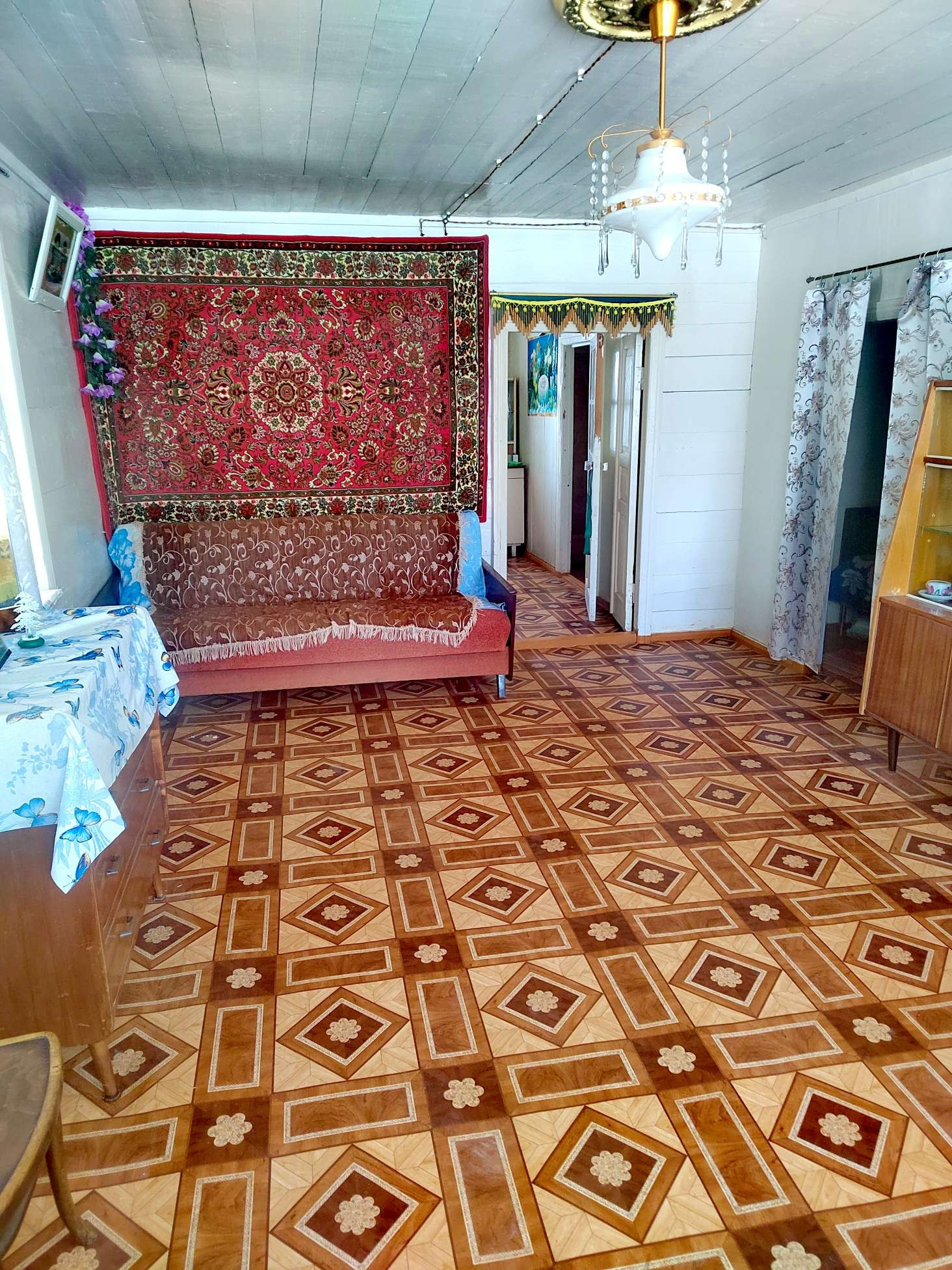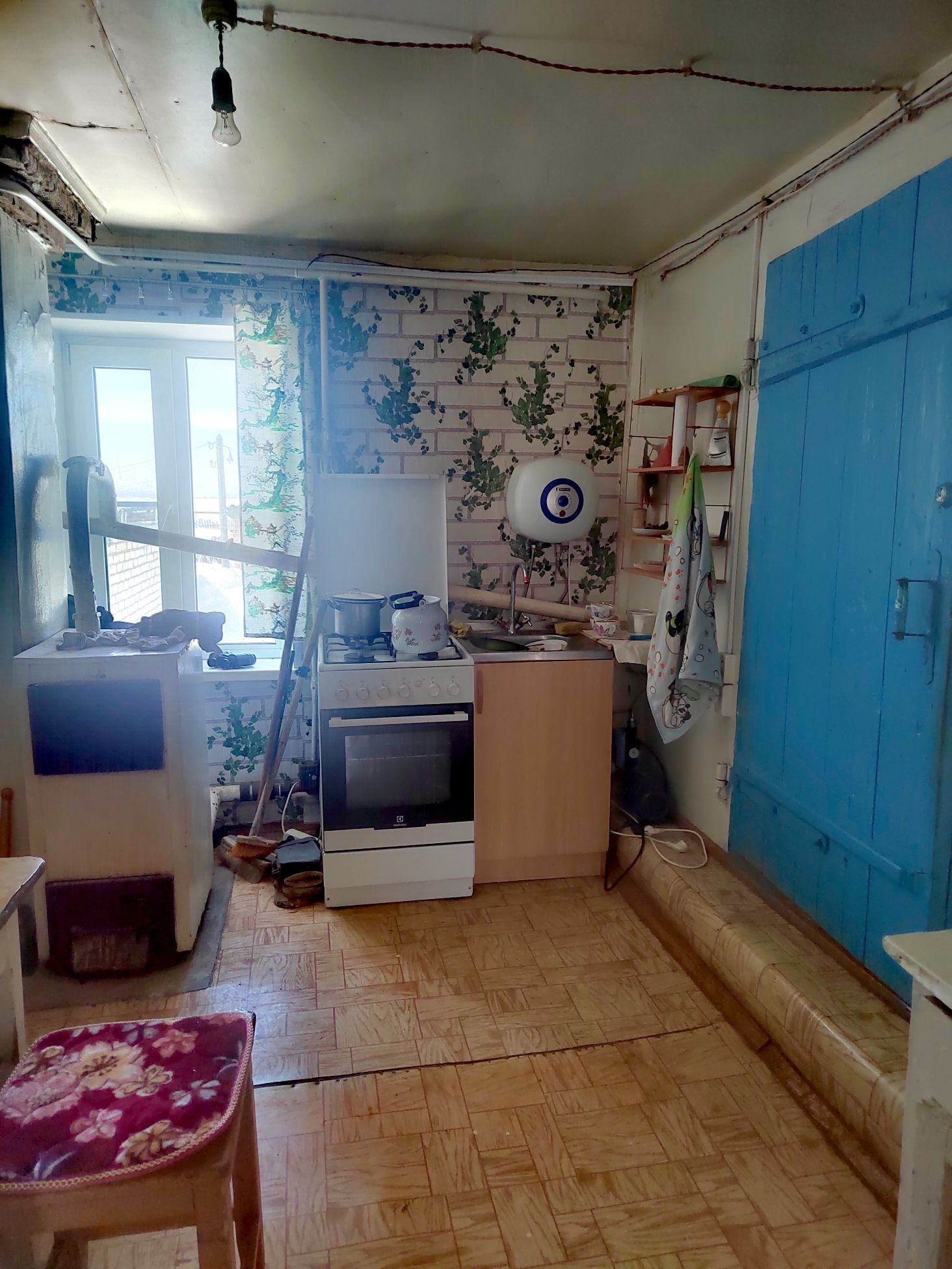 В доме большая кухня, 4 комнаты. Обычное жилое состояние дома. Есть комната, где сделать удобства. Слив есть, яма большая! Установлены приборы учёта на газ, воду и электроэнергию. Также установлен небольшой водонагреватель.