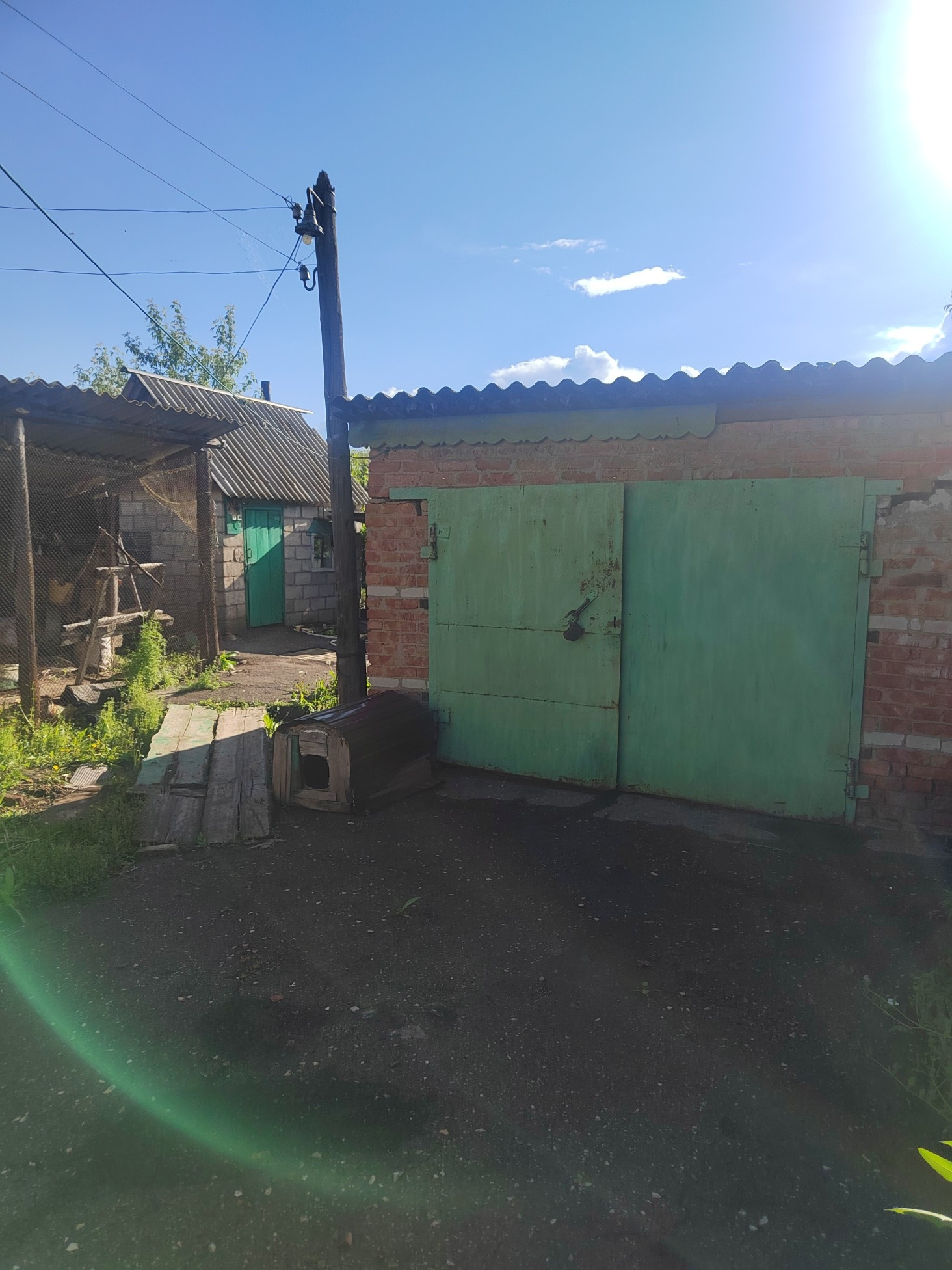 На территории расположен кирпичный гараж с ямой, сарай с погребом (сухой), летняя кухня, баня.