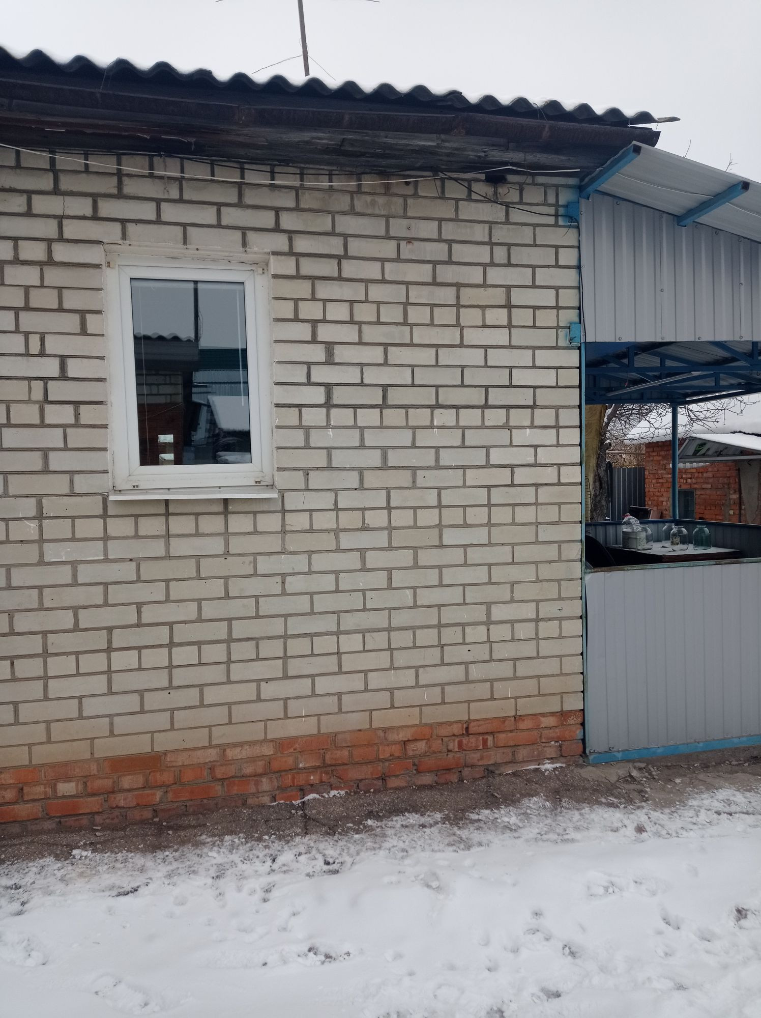 Продам отдельно стоящий дом. материал стен: брус+обложен кирпичëм. В доме 3 комнаты, кухня и санузел. Дом очень тёплый и крепкий. В доме  пластиковые окна, новое АГВ, вода скважина заведена в дом, слив. Рядом с домом беседка. На участке имеются кирпичные хоз строения: гараж и летняя кухня, сарай и баня. участок ровный и ухоженный, посажены молодые плодовые деревья, виноград и кустарники.