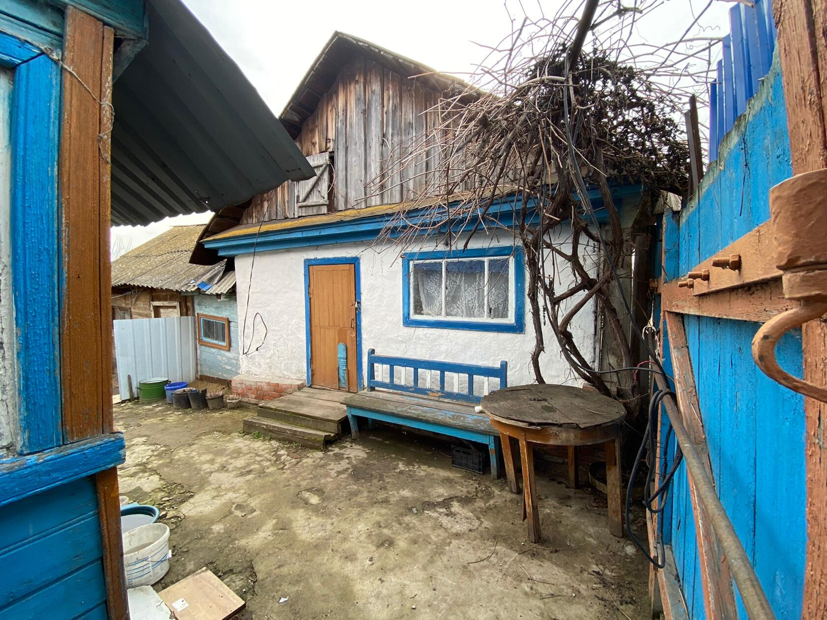 Возле дома центральные ворота с заездом на два автомобиля, под окнами небольшой палисадник. Во дворе находятся две хозяйственные постройки одну можно использовать под летнюю кухню , постройка имеет хороший погреб, вторая использовалась для содержания птицы/ домашних животных..
