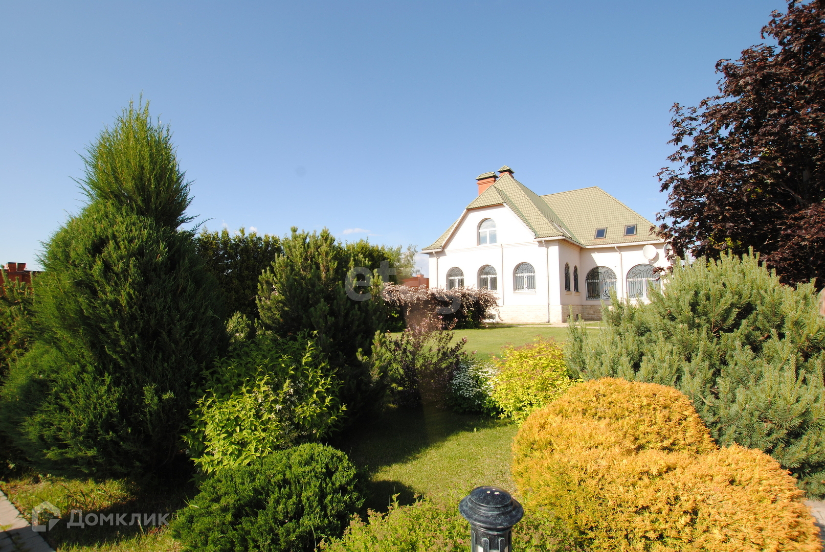 Расположен дом на участке 50 соток земли с ландшафтным дизайном, оборудованный автополивом, системой охраны и видеонаблюдения.