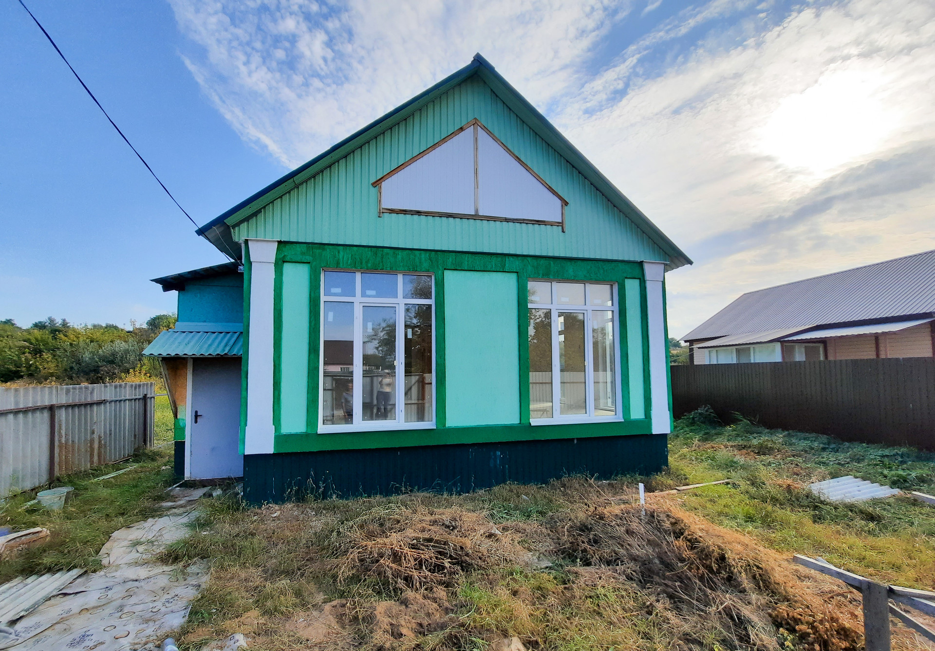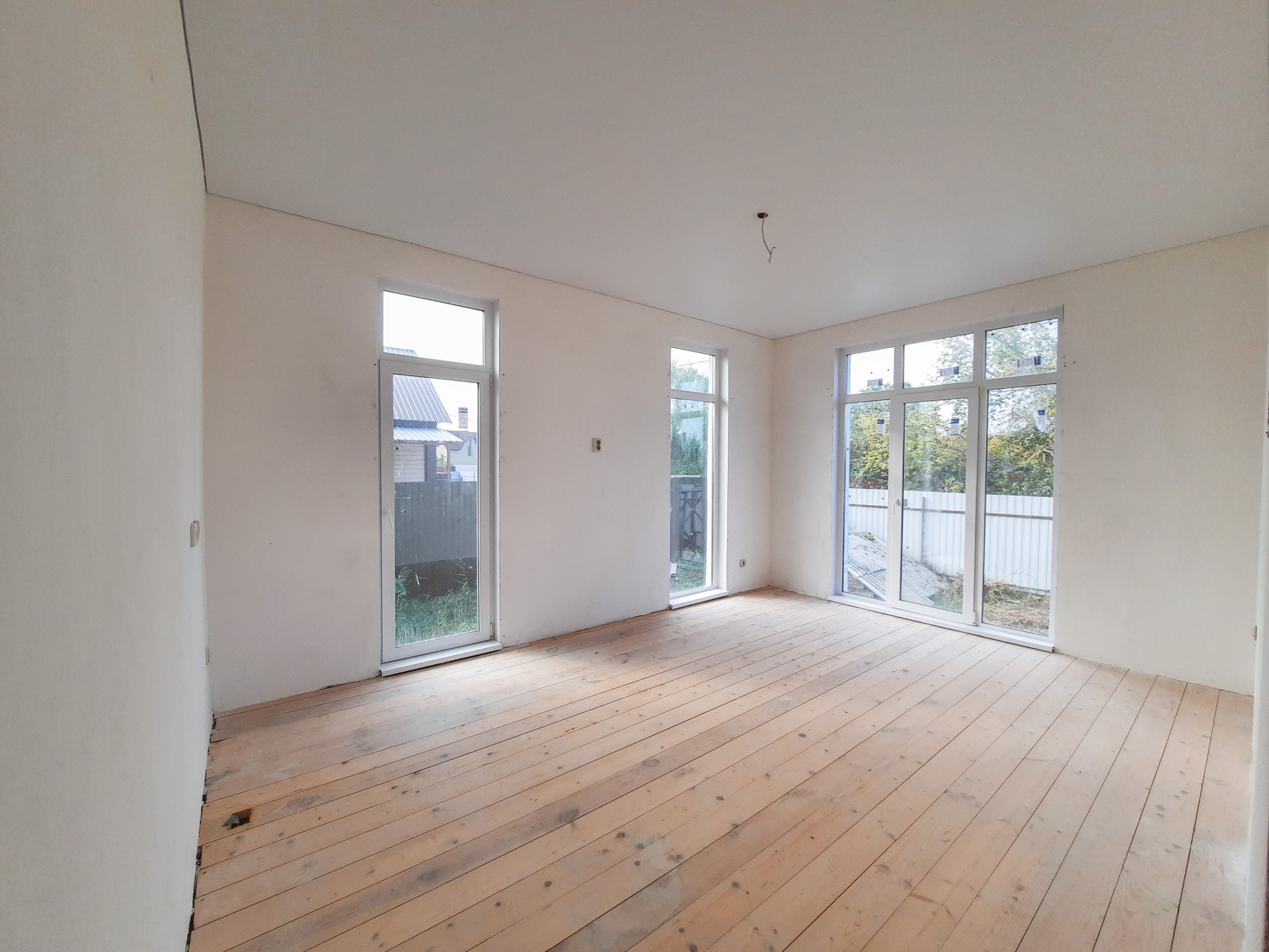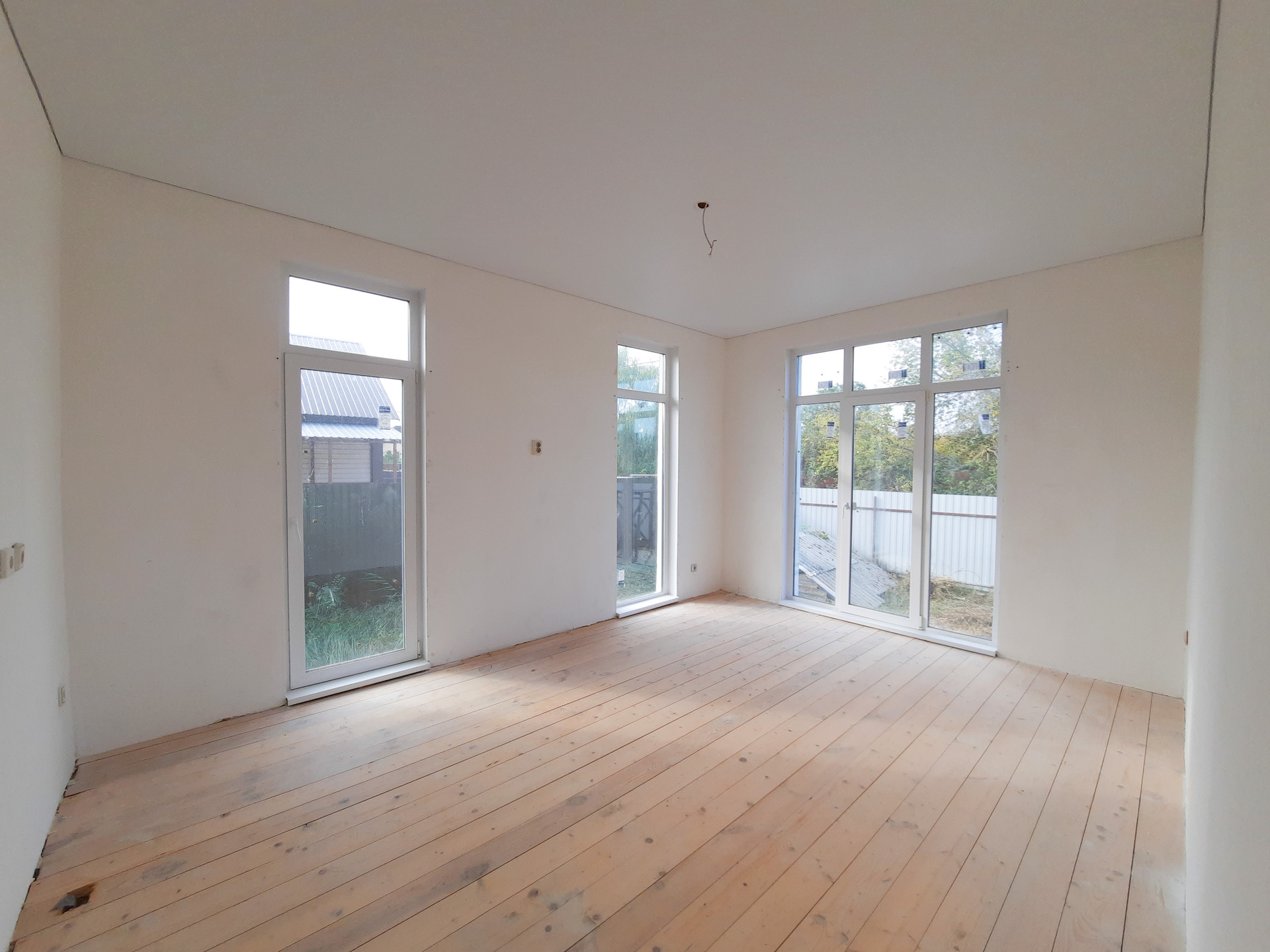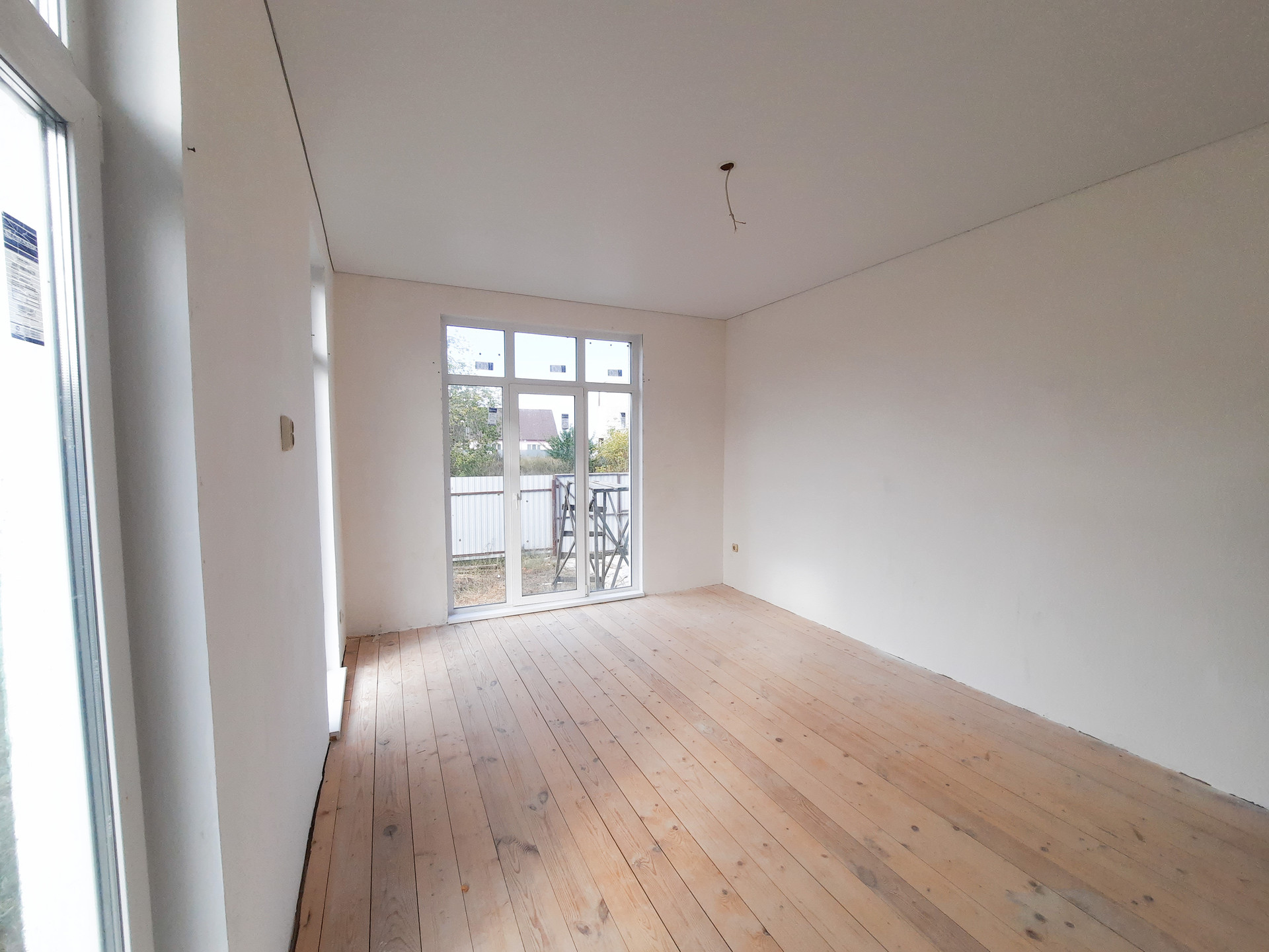 В доме просторная кухня-гостиная с витражными окнами в пол, две изолированные комнаты и сан узел, вместительная прихожая с возможностью размещения шкафа-купе.