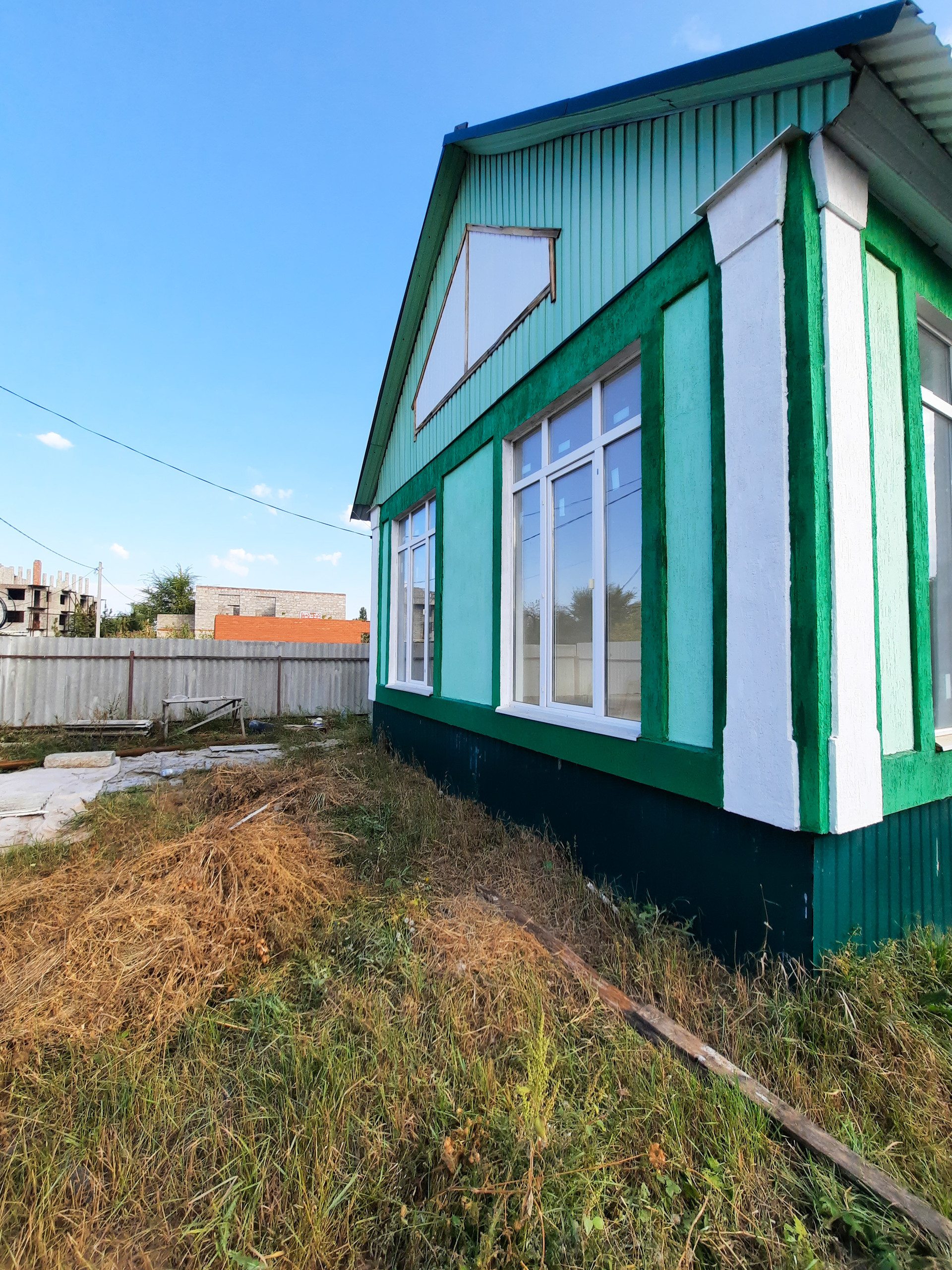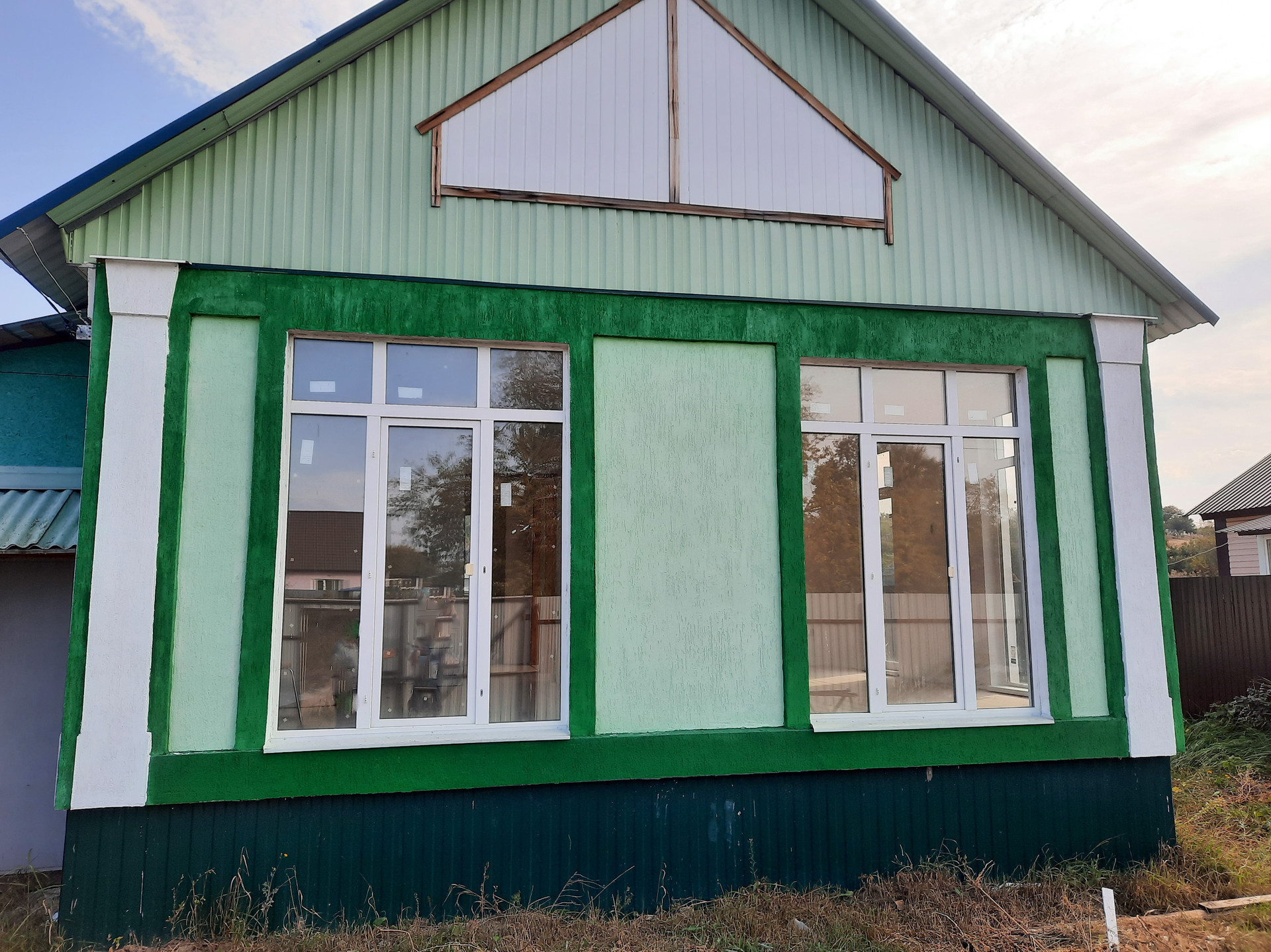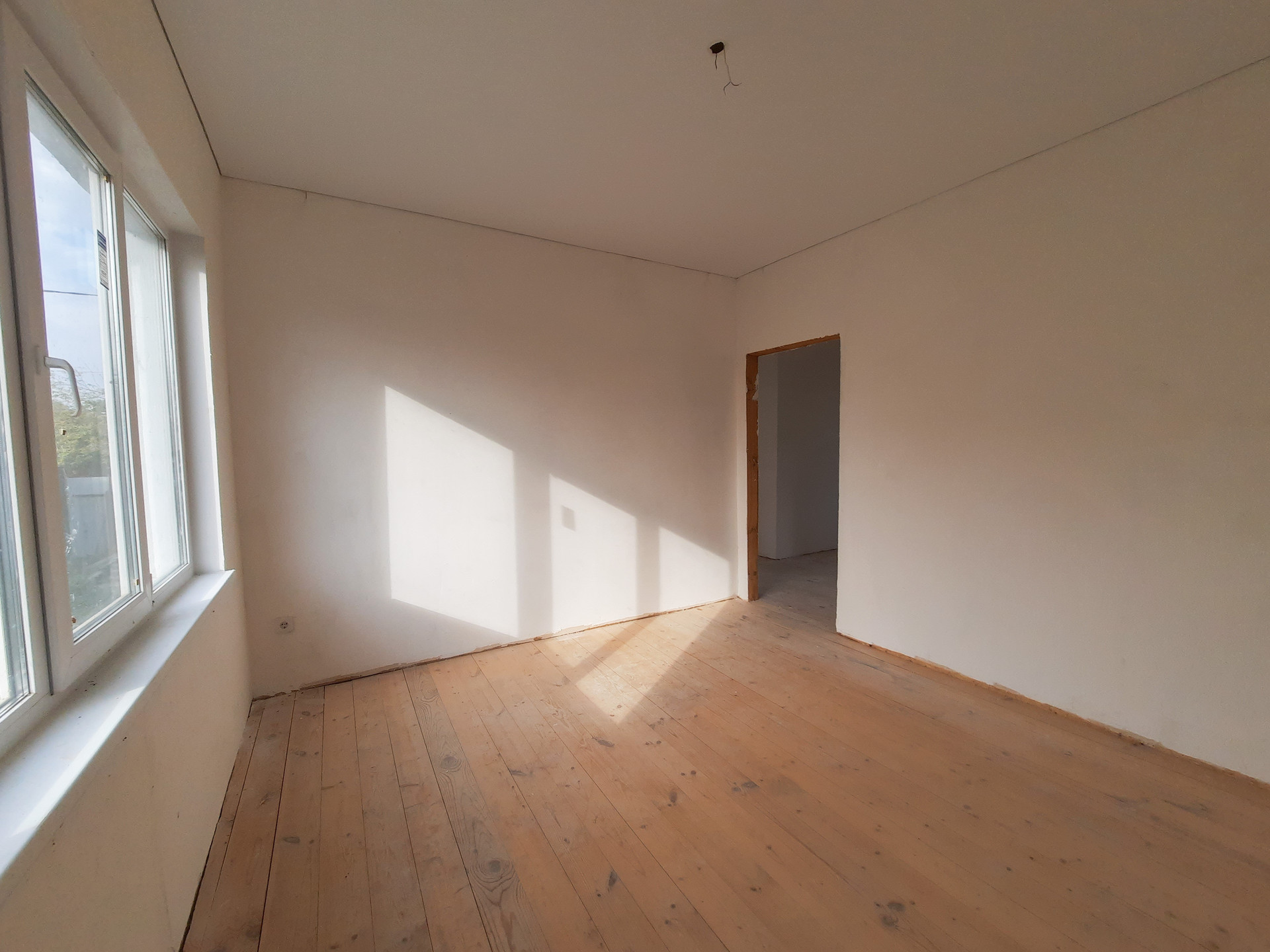 В доме просторная кухня-гостиная с витражными окнами в пол, две изолированные комнаты и сан узел, вместительная прихожая с возможностью размещения шкафа-купе.