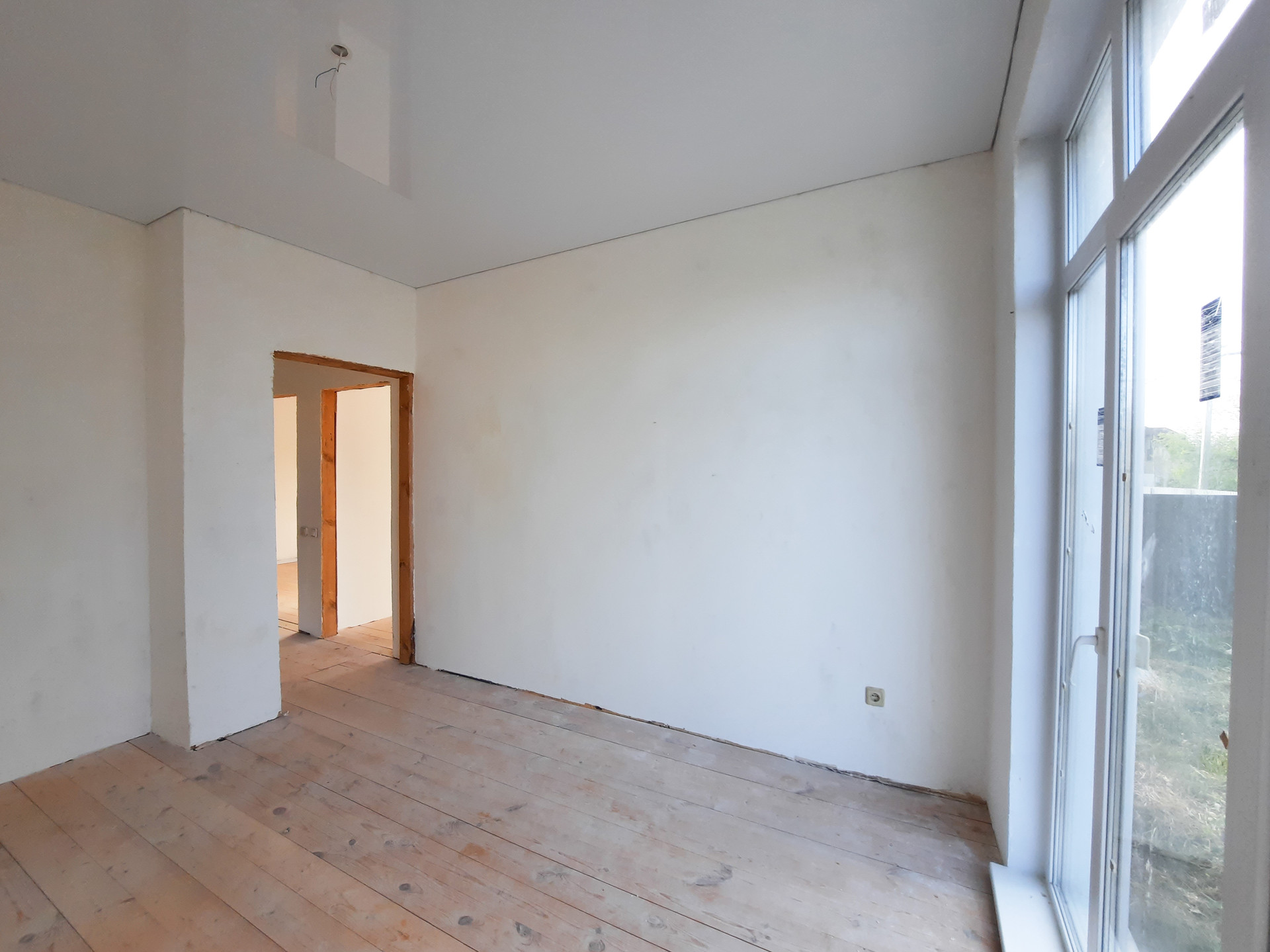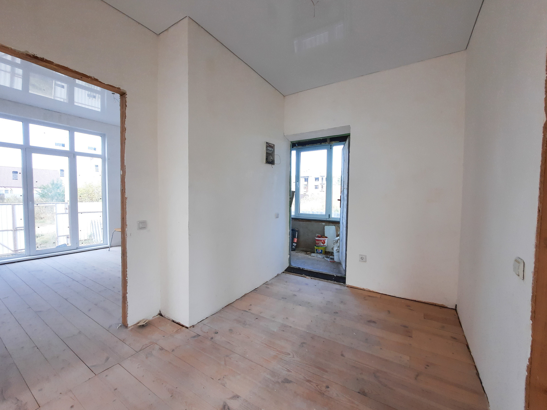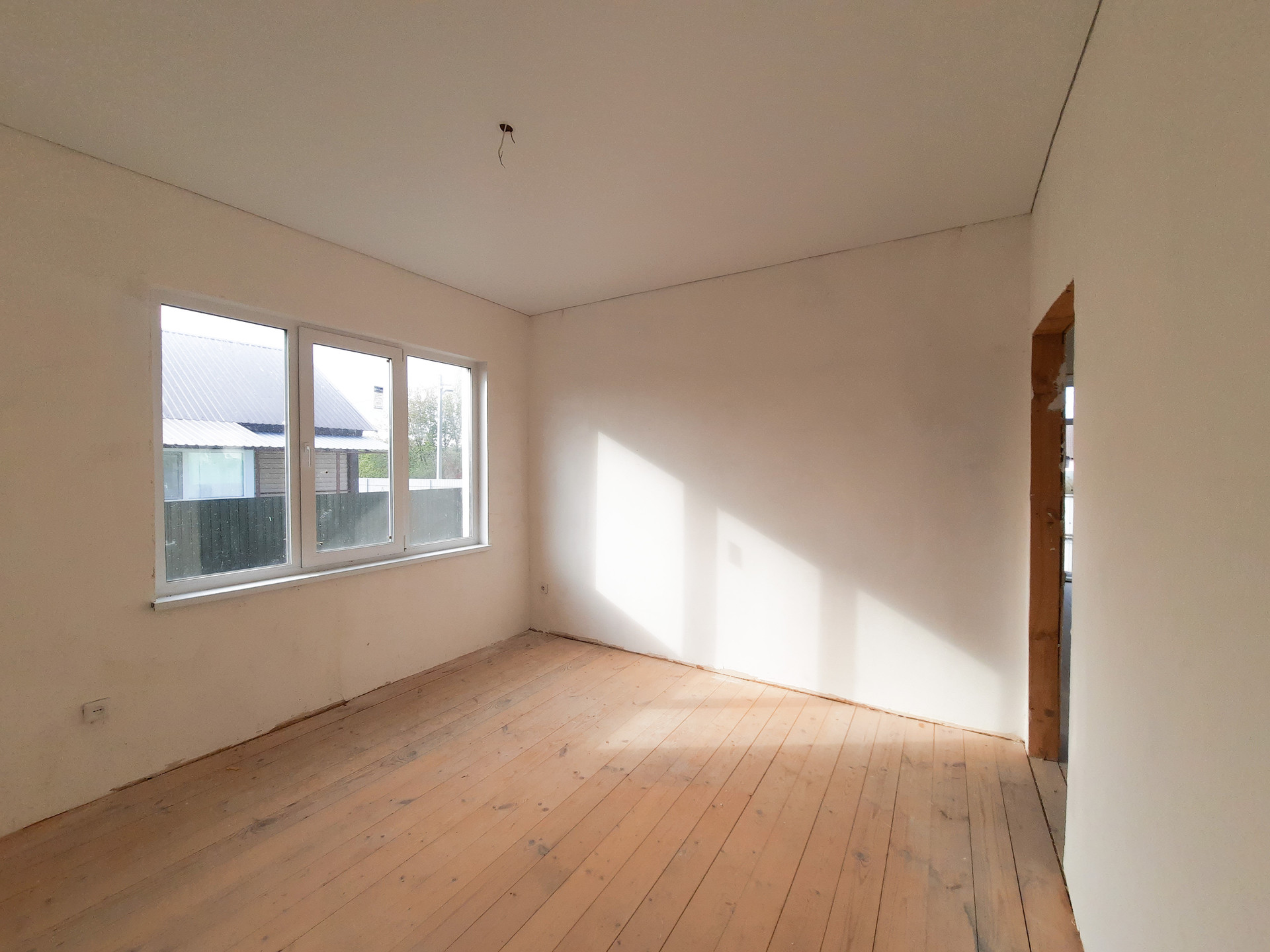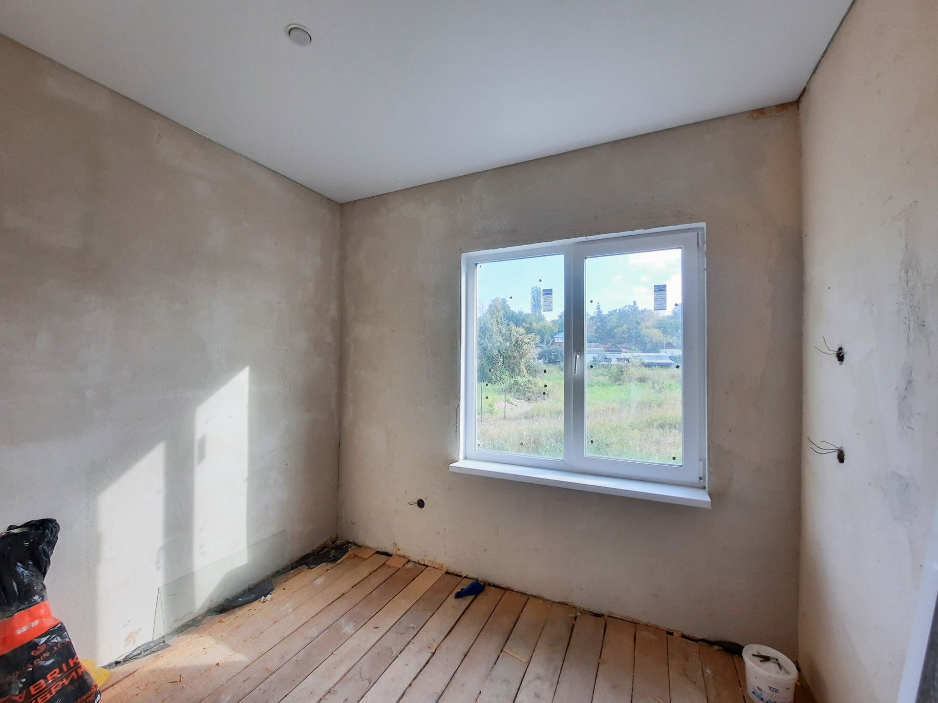 В доме просторная кухня-гостиная с витражными окнами в пол, две изолированные комнаты и сан узел, вместительная прихожая с возможностью размещения шкафа-купе.