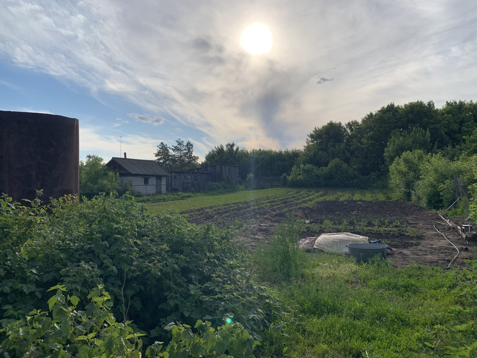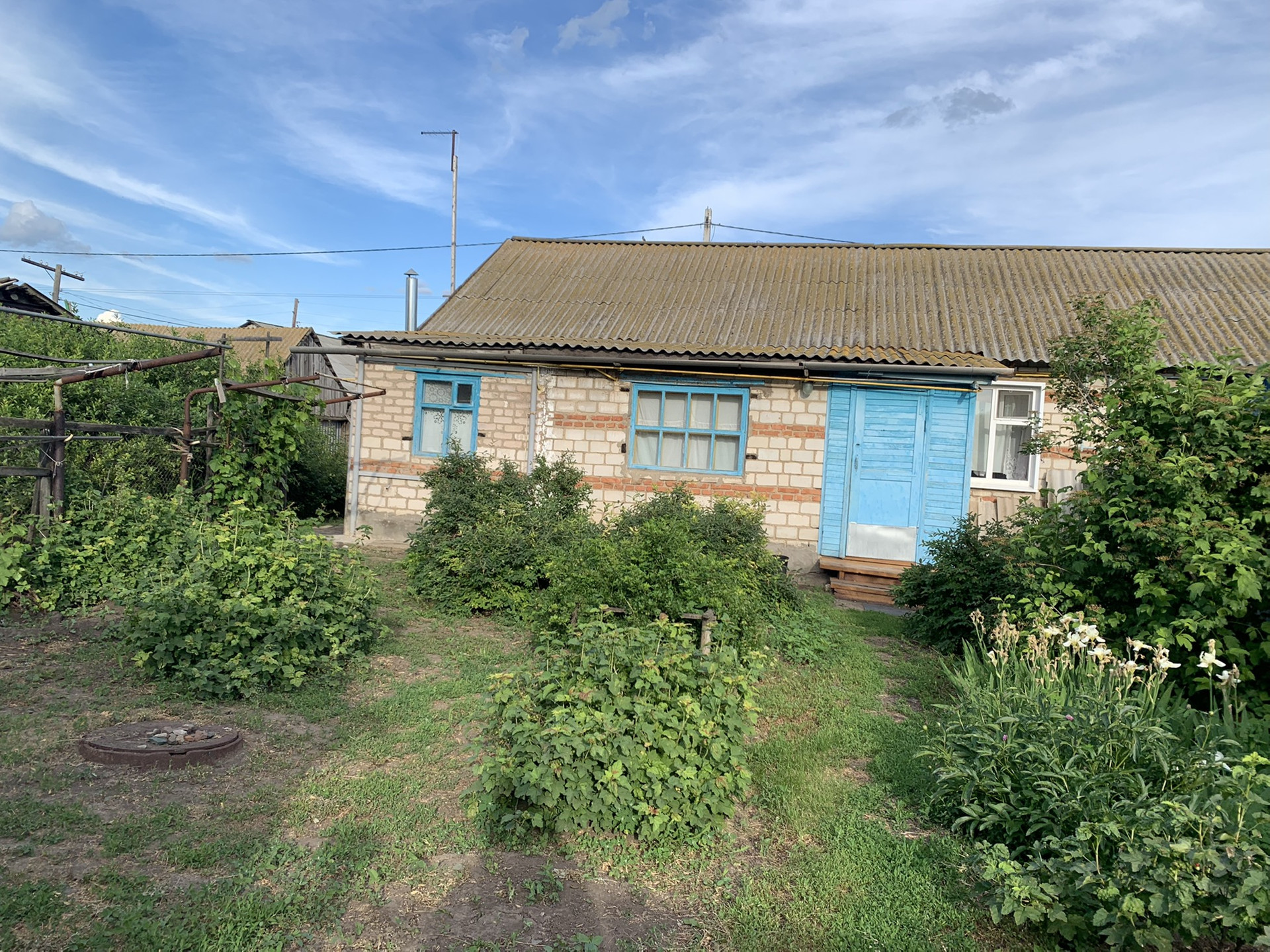 Участок 14 соток. На участке растет вишня, черная и красная смородина, малина, жимолость, виноград, клубника. Имеются хозяйственные постройки, погреб, кирпичная баня.