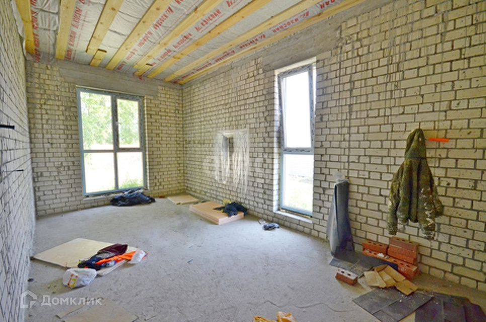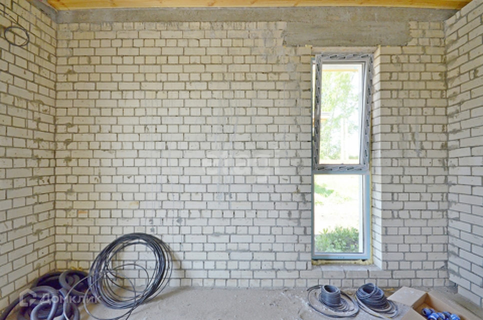 Дом построен на свайно-ростверковом фундаменте, со сваями длиной 3м, через каждые 1.2м. Материал стен - силикатный кирпич, снаружи утеплитель 150мм и декоративная штукатурка по системе Ceresit. Кровля из мягкой битумной черепицы Технониколь. Окна Brusbox70 с наружной ламинацией и мультифункциональным двухкамерным стеклопакетом, заведена вода из своей скважины, установлен глубинный насос с автоматикой на воду.