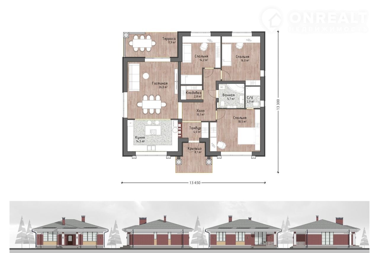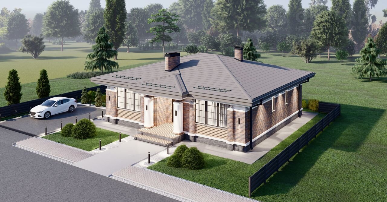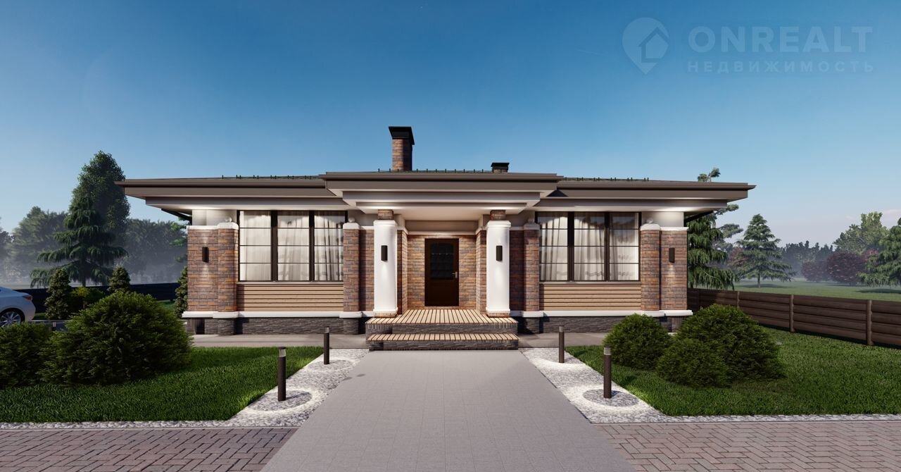 Дoм в выpазитeльнoм стиле Райта нa учaстке 5 соток. Общая площадь - 164 м2. Внутренняя площадь - 135 м2. Земельный участок и коммуникации входят в стоимость дома. Гарантия на работы и материалы.
