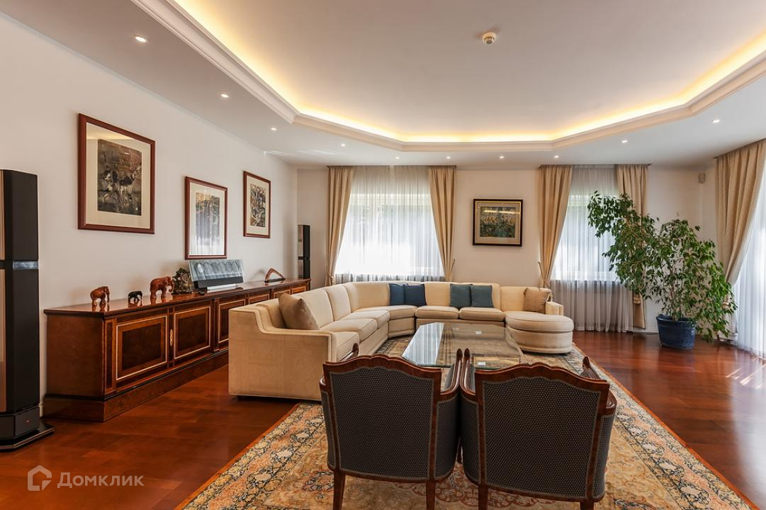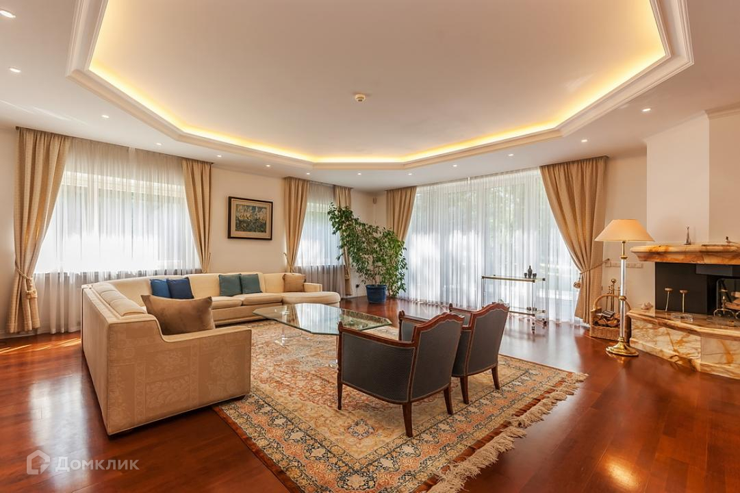 Предлагается дом, готовый к проживанию, на ландшафтном участке в охраняемом поселке. В доме есть гостиная с камином и выходом на участок, прихожая, столовая, кухня, кабинет, спальня.