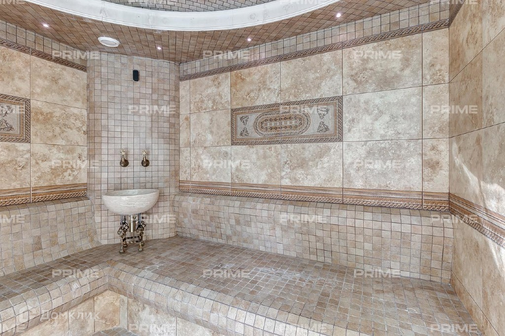 1-й этаж: холл, гардеробная, с/у, гостиная с камином, вторым светом и выходом на участок, кухня, столовая, с/у, кинотеатр, бассейн 10 м, джакузи, хаммам, душевая, с/у, квартира для персонала, постирочная, гардеробная, комната для охраны.
