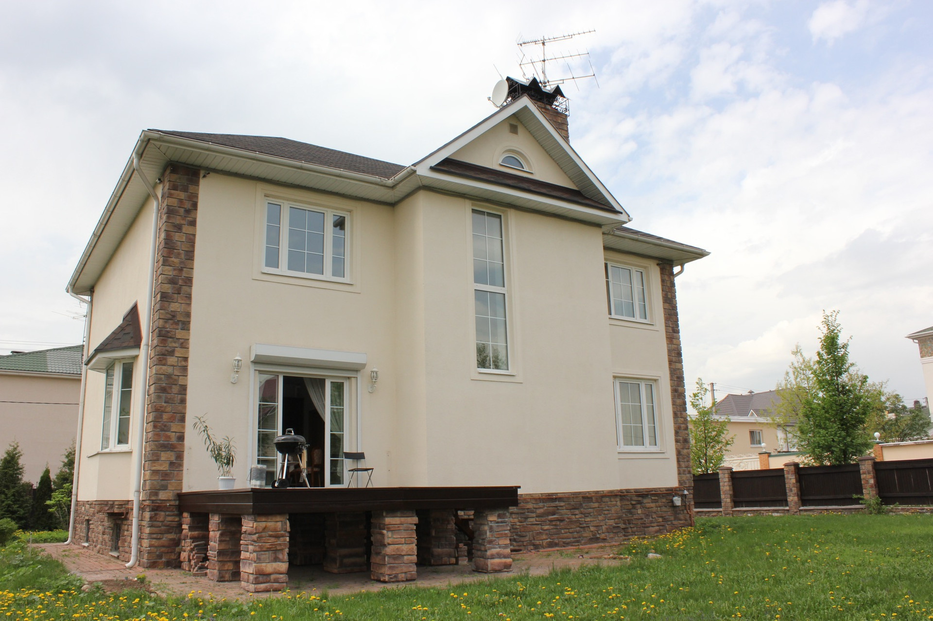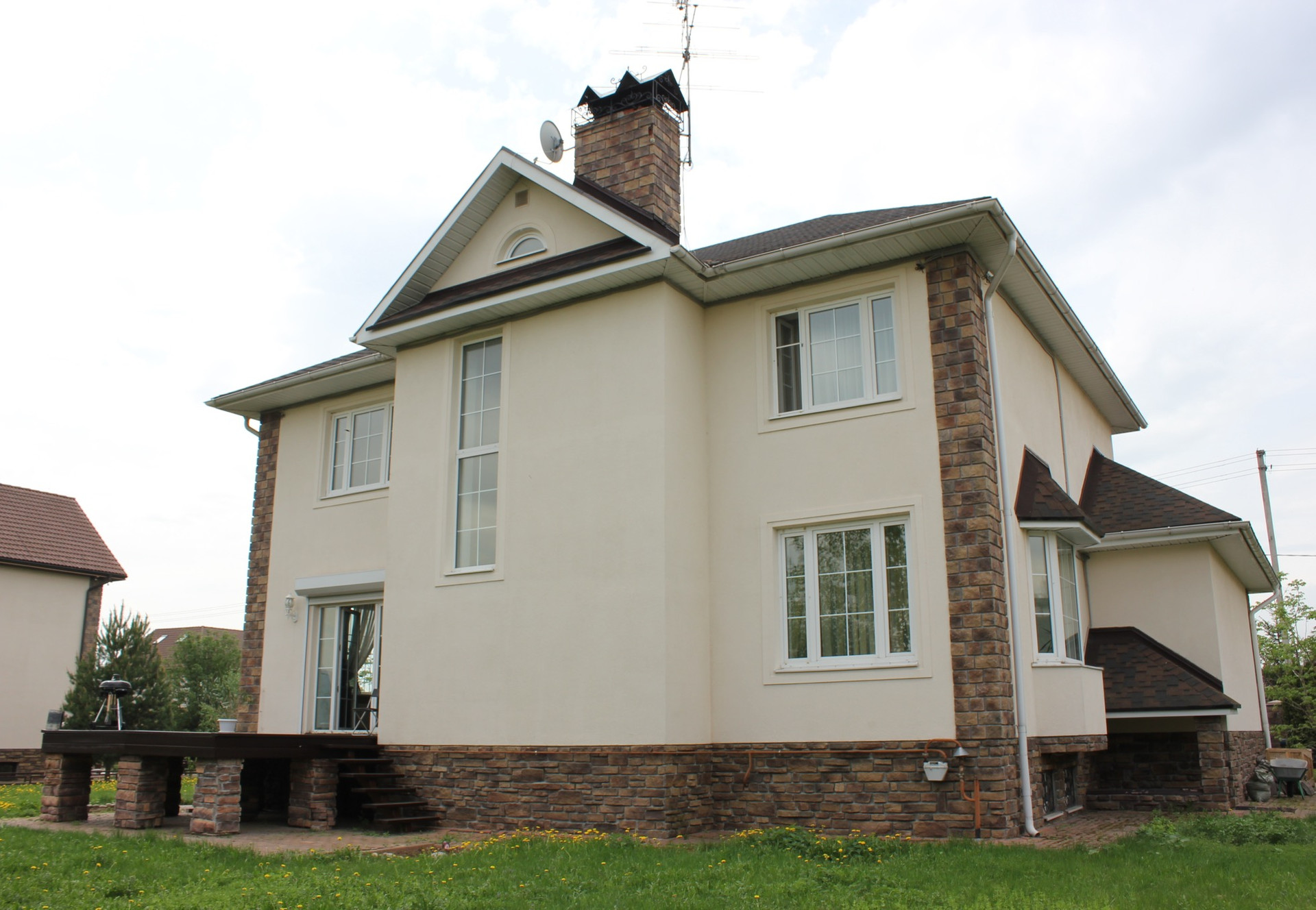 Собственником продается дом с жилым цокольным этажом. 4 спальни, 4 санузла, камин, прачечная, помещение под домашний кинотеатр, сауна, веранда, гараж на 1 авто плюс стоянка еще на один авто на участке.