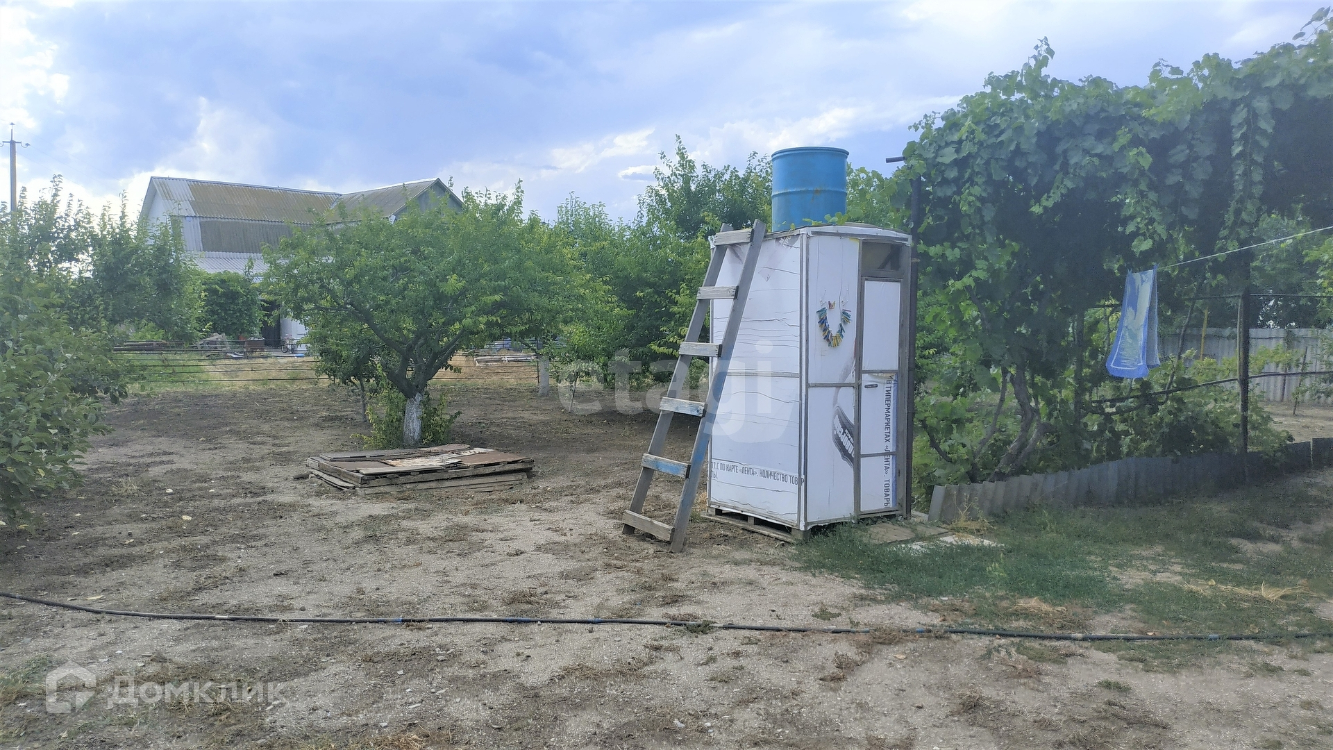 - При выходе большой навес, во дворе зона отдыха, шпалеры с виноградом.
