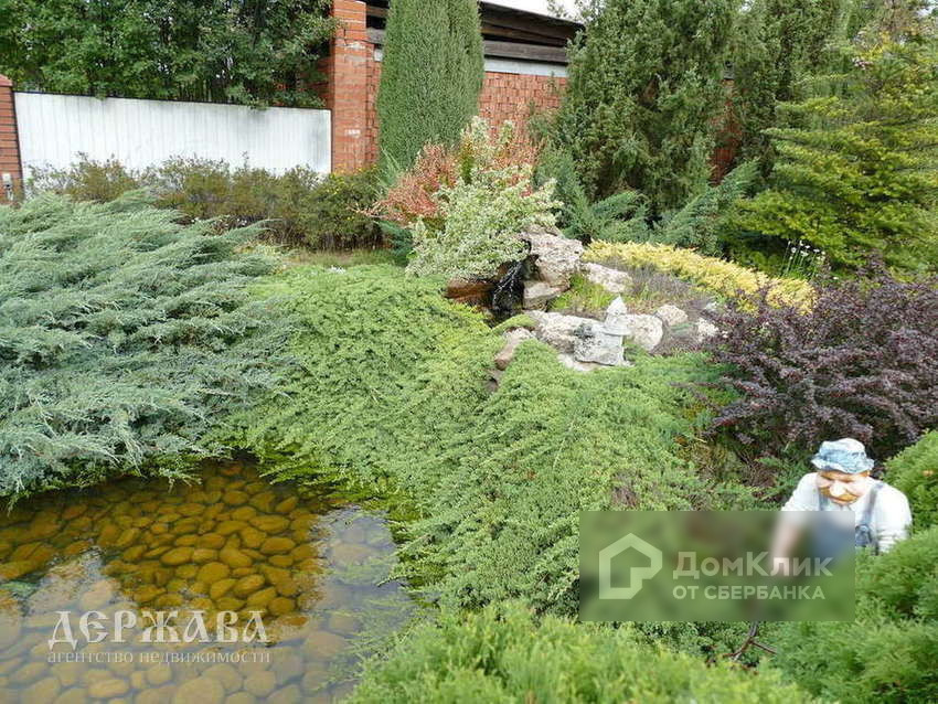 Ухоженная, благоустроенная территория ( двор уложен природным камнем, газон, декоративные и хвойные насаждения, мини водопад, плодоносящий сад)