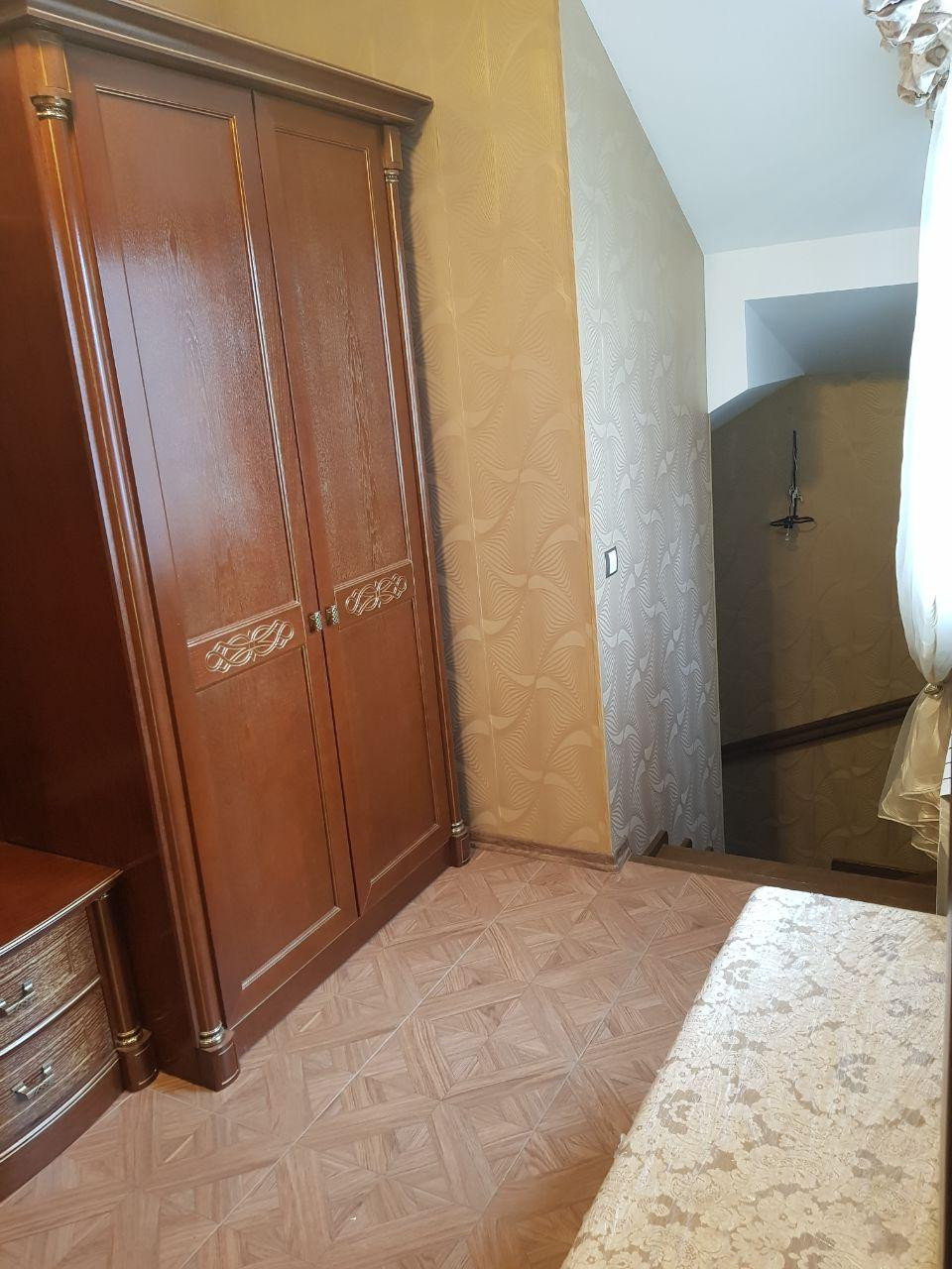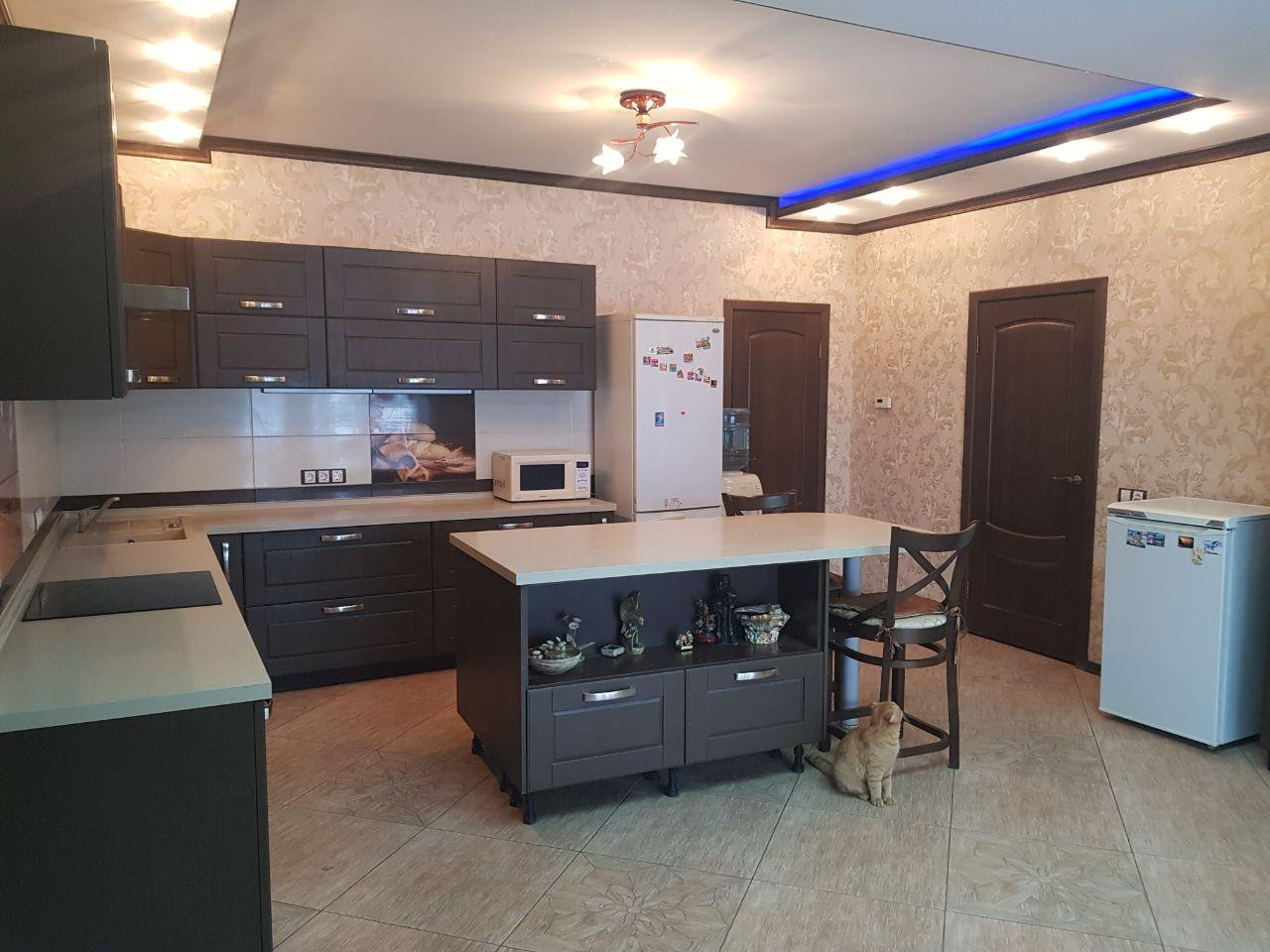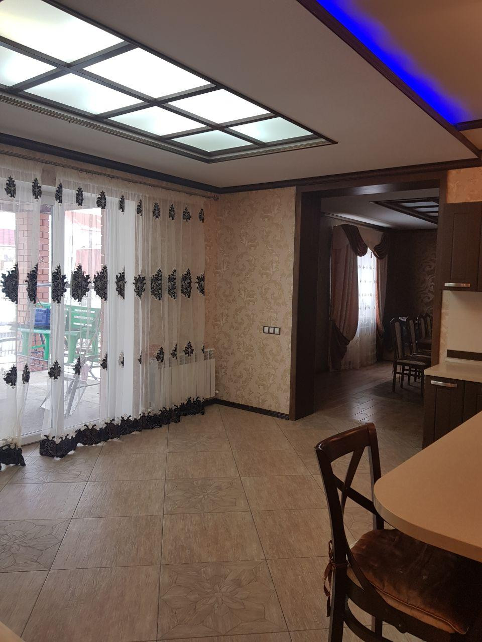 Продаем 2-х этажный коттедж из газосиликатных блоков, с облицовкой из качественного кирпича, внутри утеплитель. Зарегистрирован и поставлен на учет в 2012 году. Прекрасная локация. Вся инфраструктура в шаговой доступности: супермаркет, множество продуктовых магазинов, поликлиника, детский сад, школа, почта, аптеки, банк. 1-й этаж: кухня-29.51 м2 с панорамным остеклением с выходом на террасу, гостинная-столовая-55.2 м2, жилая комната-спальня-18.74 м2., совмещенный санузел с душевой со стеклянными раздвижной дверью, везде подогрев полов. 2-й этаж: четыре жилых изолированных комнаты размерами: 18.3-25.9-22.7-17.27 м 2. Большой коридор размером 19.52м2.В одной из комнат имеется большая гардеробная. Санузел, ванная комната, обе комнаты с подогревом полов. Отделка внутри дома выполнена из качественных и дорогостоящих материалов. Состояние ремонта отличное-заезжай и живи. Во всех комнатах установлены кондиционеры. Цокольный этаж-черновая отделка с подогревом полов, выведены все коммуникации, сделан многоуровневый потолок, выведены коммуникации под проектор для домашнего кинотеатра. Из дома выход в гараж, летнюю кухню (вторая кухня). В гараж выведены коммуникации, вода, имеется смотровая яма с подвалом для хранения заготовок и овощей. На территории участка имеется одноэтажное строение без отделки под баню и гостевой домик с летней кухней (возведен стены, крыша, подведены коммуникации) Большой ухоженный участок с плодовыми деревьями и кустарниками. Водоснабжение центральное, канализация-2 септика. Отопление газовое. Везде стоят регуляторы температуры. Все делали для себя, в доме очень уютно. 1 взрослый взрослых собственник, документы готовы к сделке. Потенциальному покупателю приятный бонус в виде торга. Показы по договоренности.