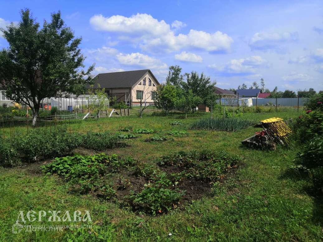 Участок 15 сотки: ровный, ухоженный, правильной формы, молодой плодоносящий сад, огорожен забором с двух сторон.
