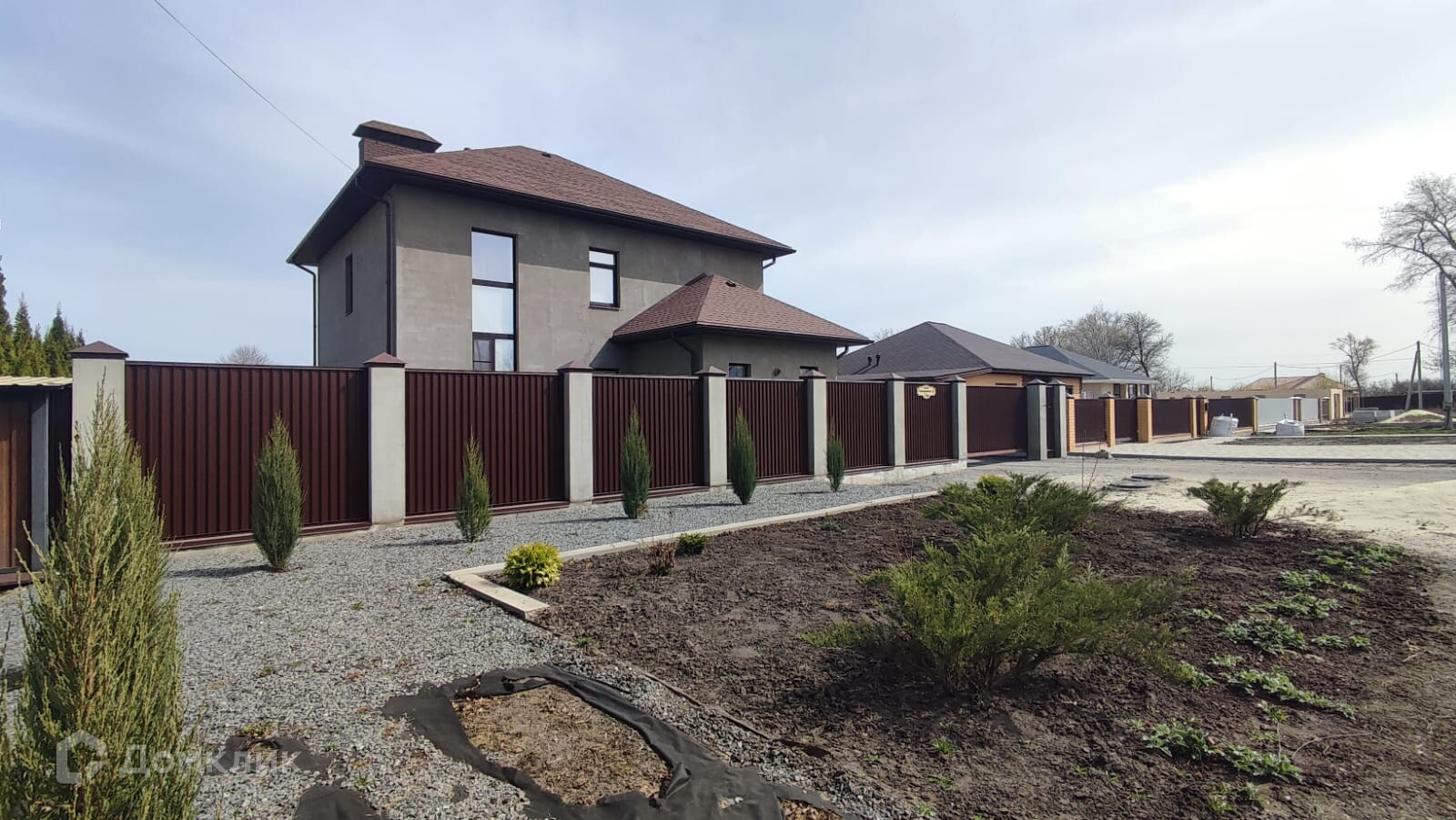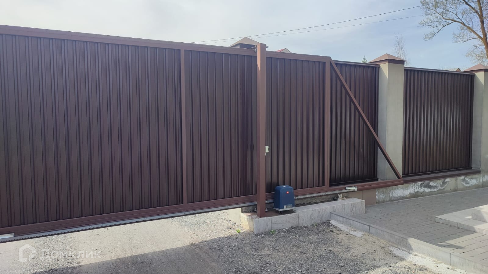 Забор по всему периметру - металлопрофиль, на основательном фундаменте, лицевая часть дополнена столбами, калиткой и воротами с электроприводом