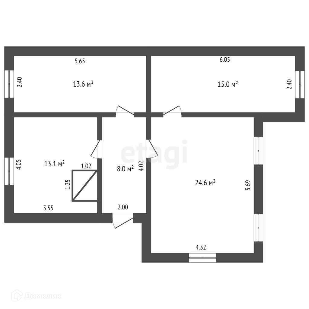 Общая площадь 74.3 м2